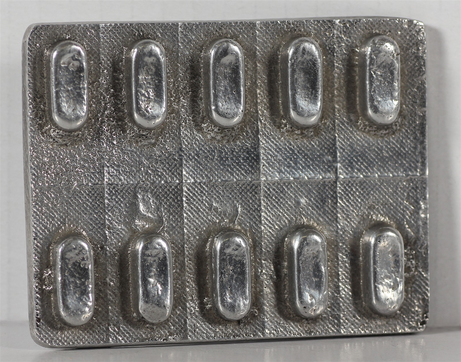 RIZZOLI GIOVANNI Quilonorm. 2000. Metallo cromato. Cm 9,00 x 6,50. Al retro firma e data.