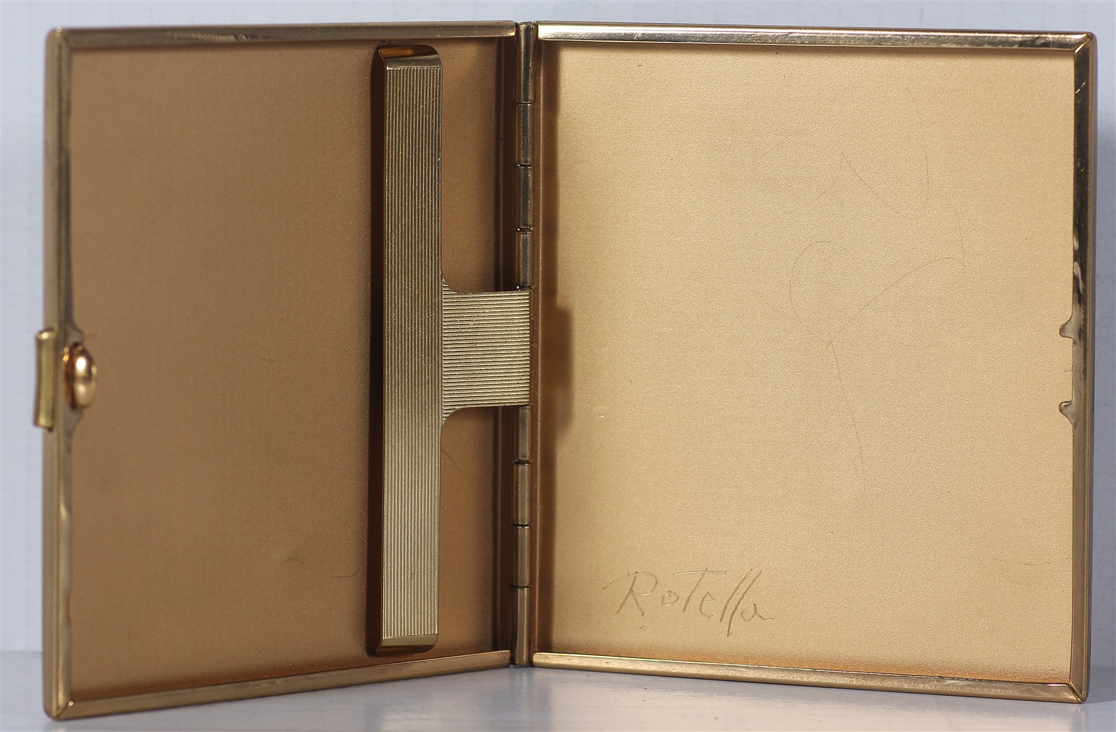 ROTELLA MIMMO (1918 - 2006) Porta sigarette. Metallo cromato. Cm 10,00 x 9,00 x 2,00. Firma incisa all' interno.