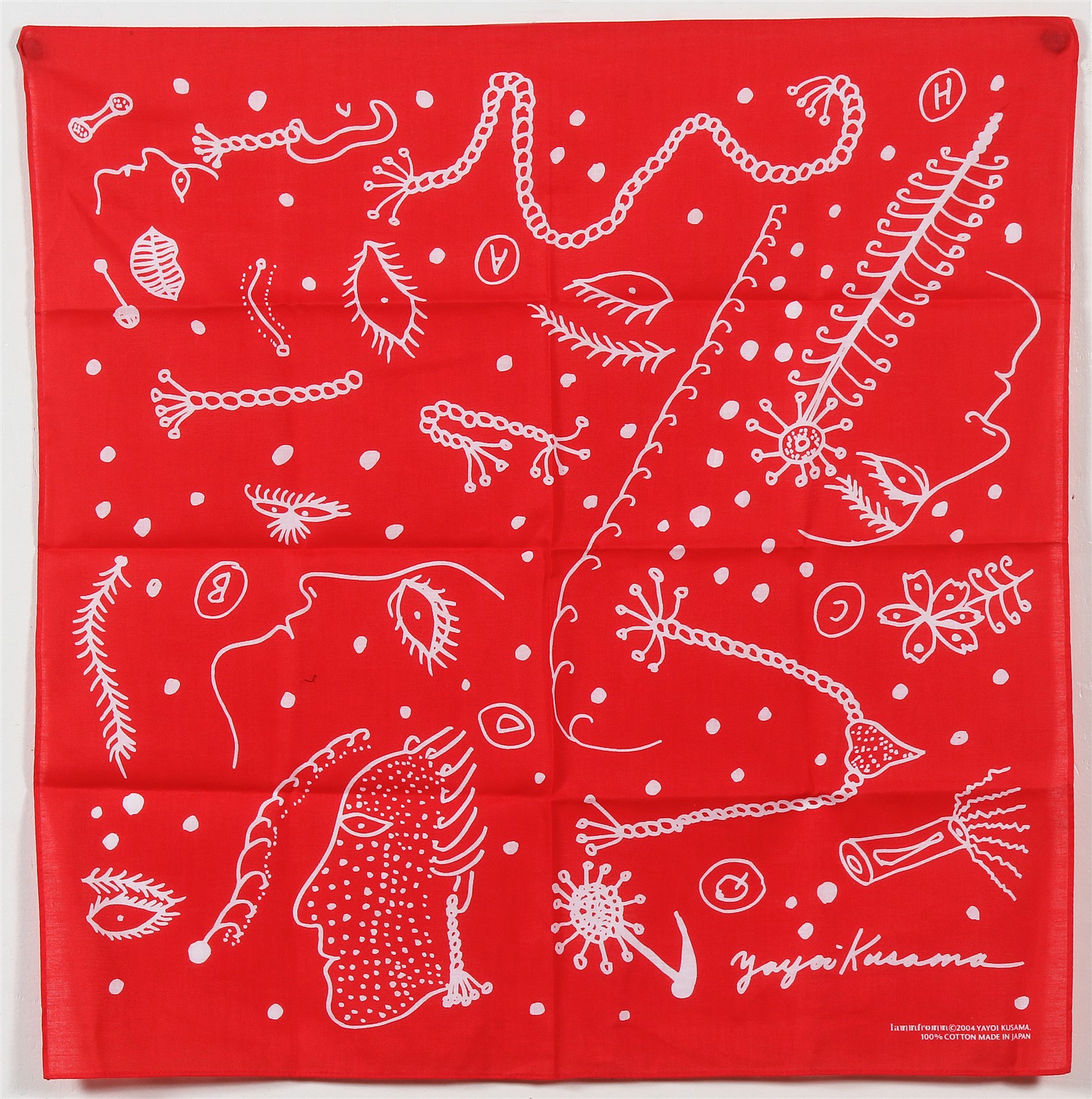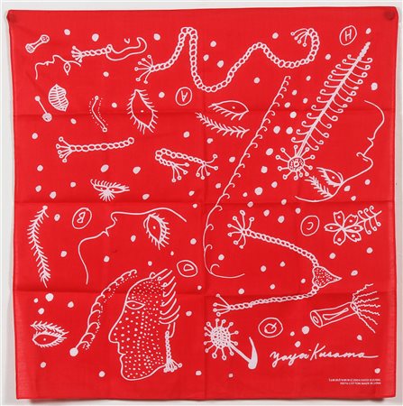 KUSAMA YAYOI (n. 1929) Bandana. 2004. Stampa su cotone. Cm 52,00 x 52,00. Firma e anno a stampa.