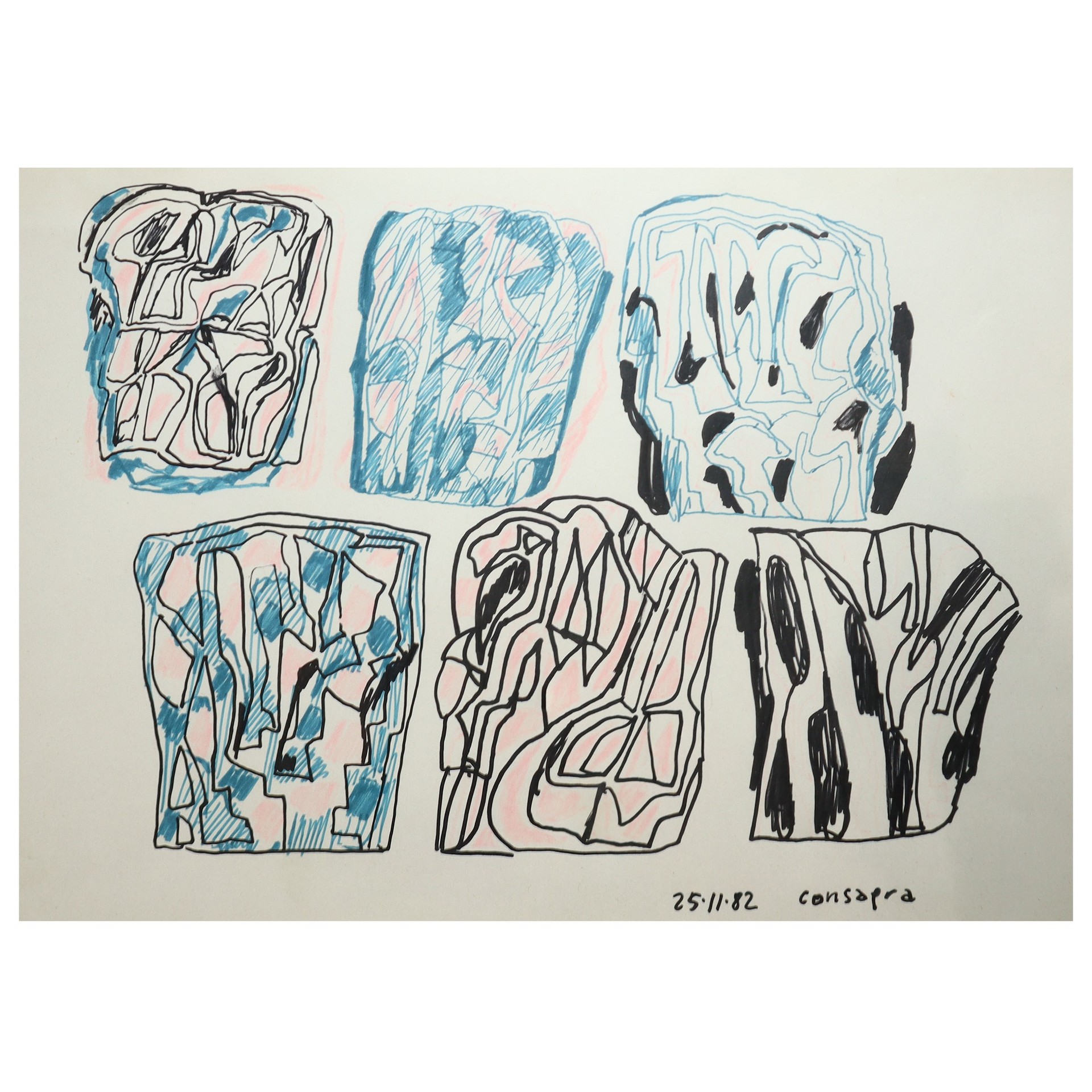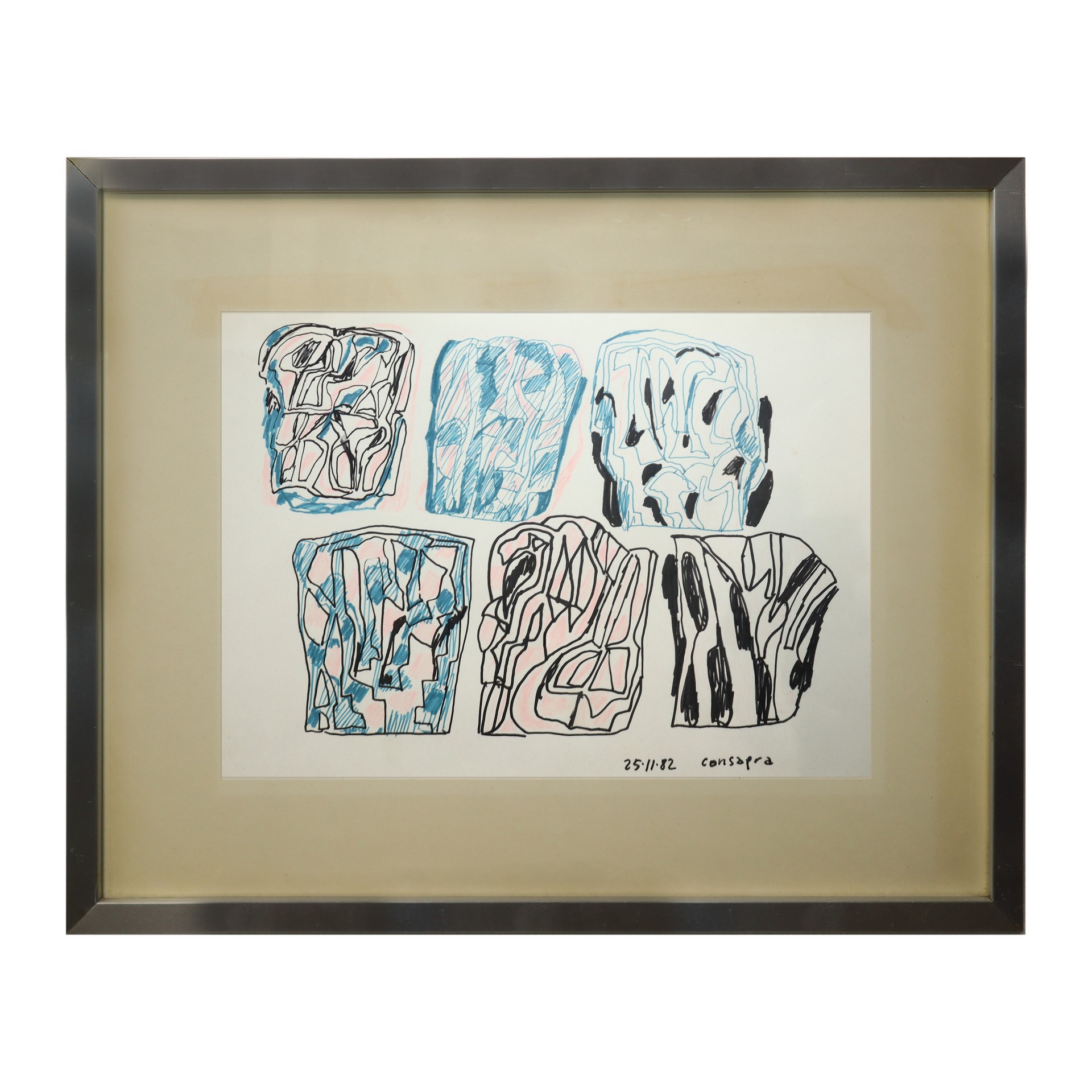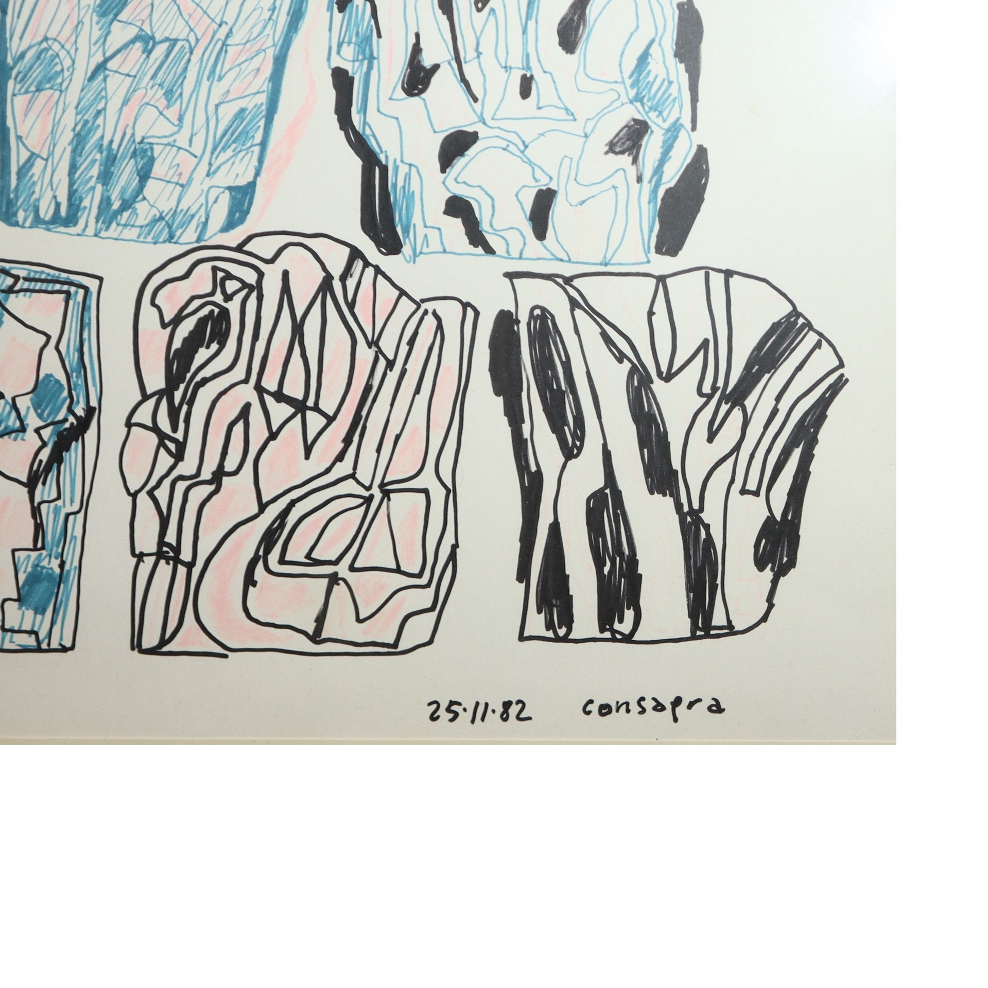Pietro Consagra (1920 - 2005) - Senza titolo, 25-11-1982 h cm 24X34 in cornice h cm 39X49 Tenica mista su carta