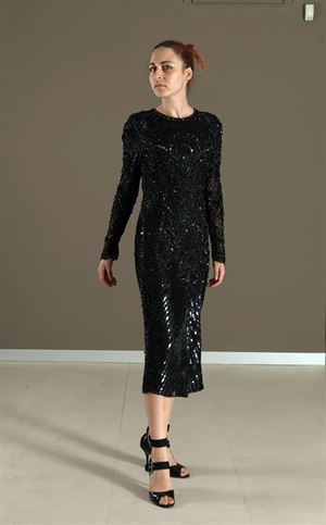 ABITO SARTORIALE Abito da sera in seta nera lounghette con applicazioni di...
