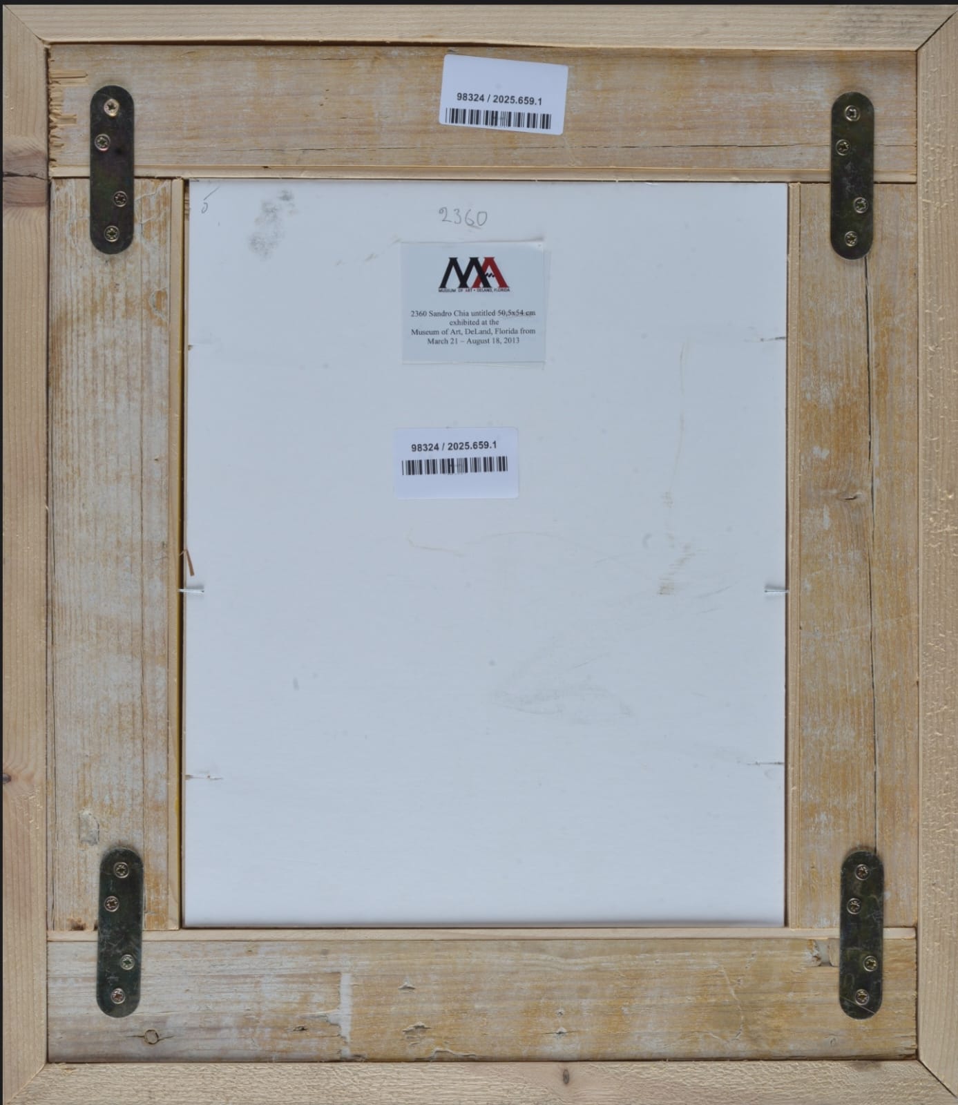 Sul verso: etichetta Museum of Art, Deland, Florida.