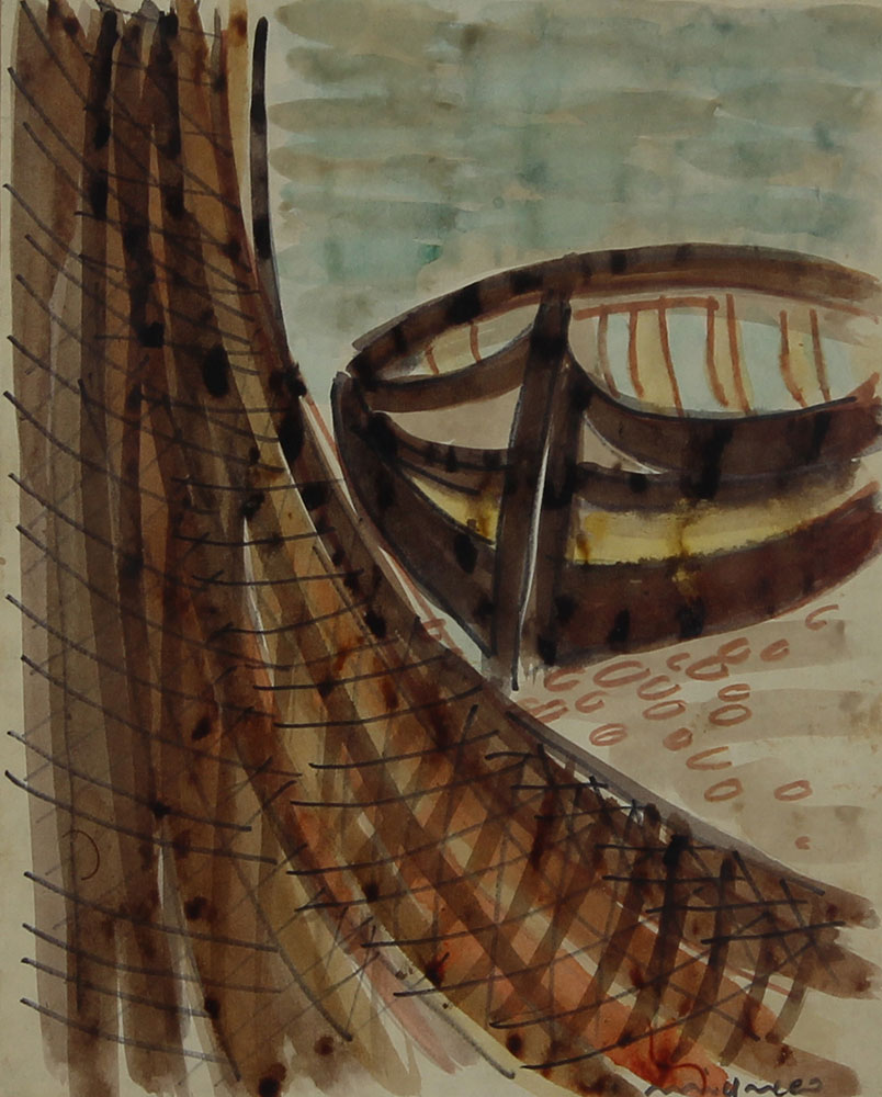 Lotto 5 | Migneco Giuseppe Senza titolo tecnica mista su carta applicata su tela, cm....