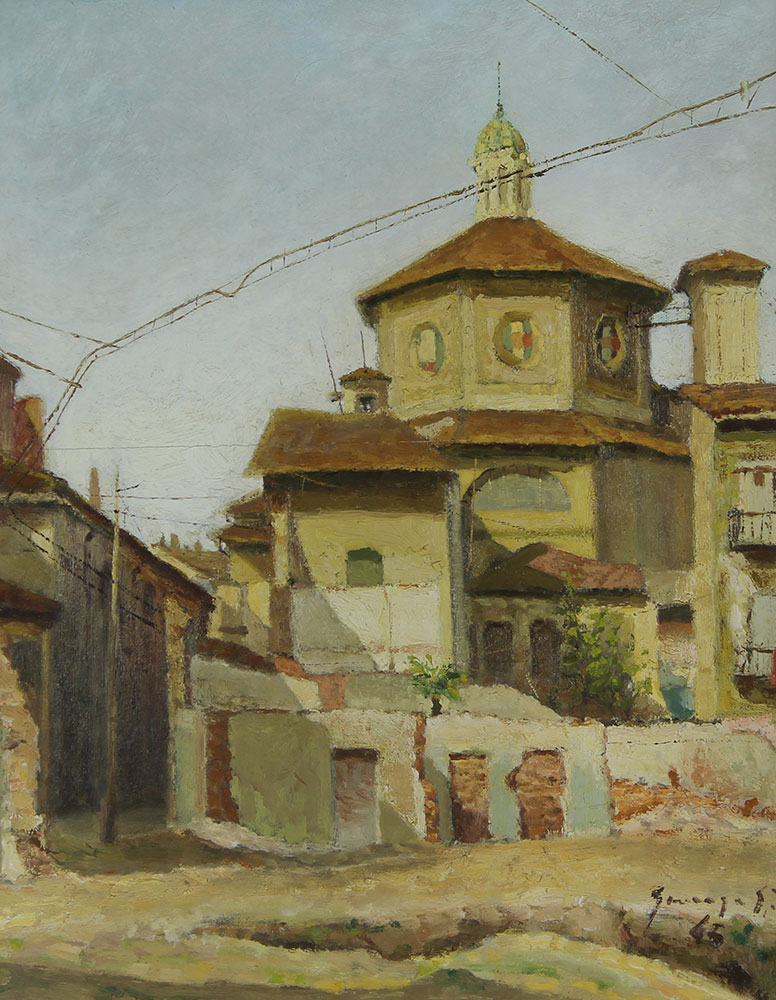 Gonzaga Giovan Francesco Scorcio Milanese, 1945 olio su tavola, cm. 60x50 firmato e datato in basso a destra, etichetta della Galleria d'Arte Gavioli al retro