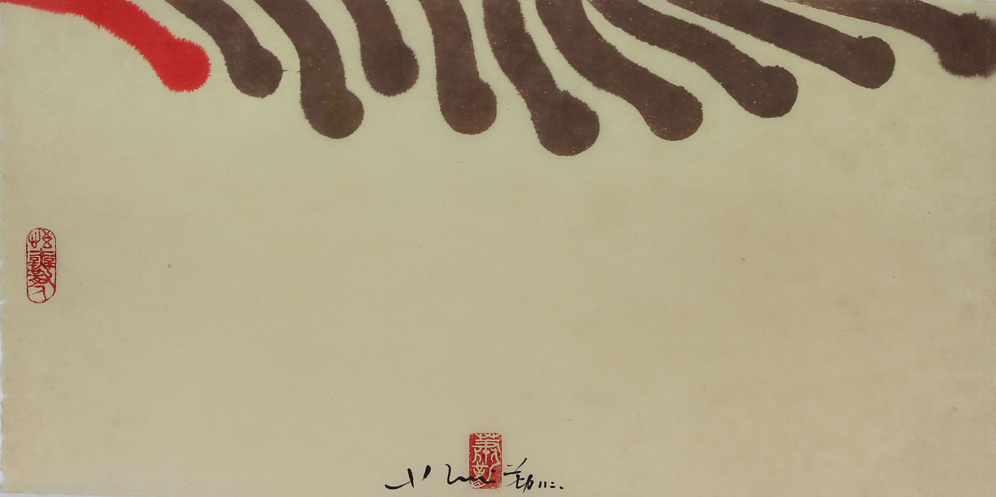 Chin Hsiao Senza titolo, 1984 tecnica mista su carta, cm. 37,7x64 firmata in basso al centro, certificazione su fotografia della Galleria arte Spiga Milano senza cornice