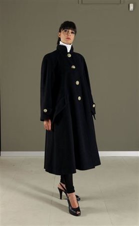 CHANEL Cappotto a ruota in cachemire blu, quattro bottoni gioiello, due...