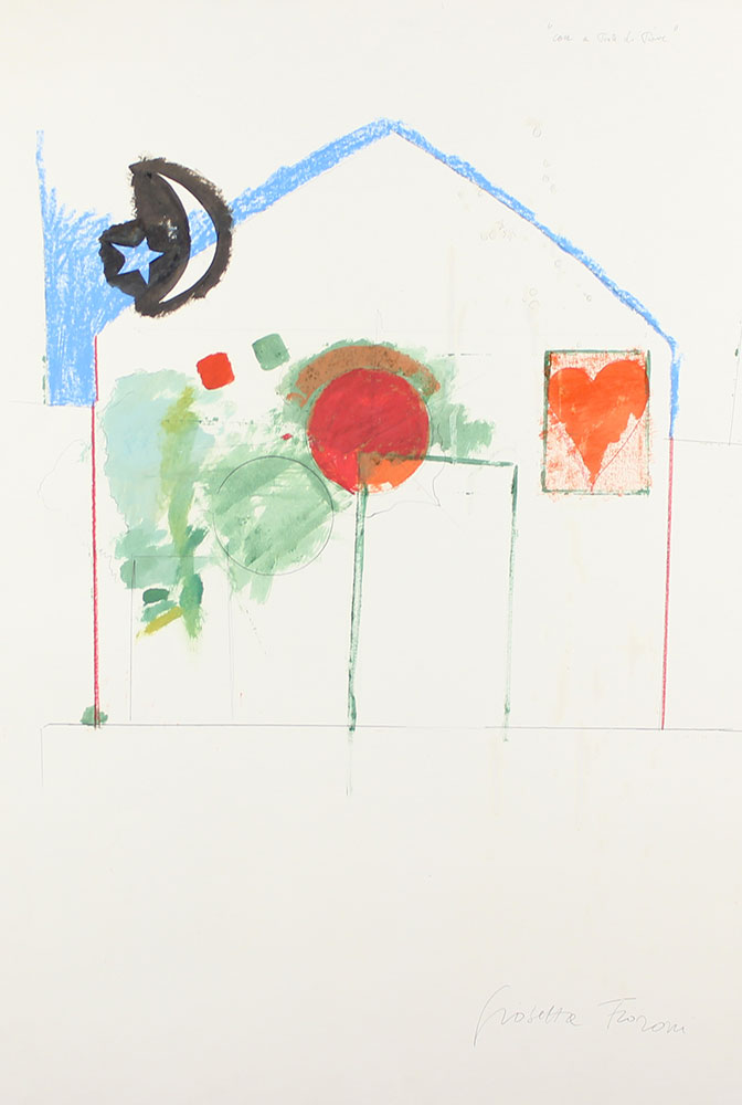 Fioroni Giosetta Case a Ponte di Piave tecnica mista su cartoncino, cm. 100x70 firmato in basso a destra, intitolato in alto a destra, certificato di autenticità dell'artista su fotografia