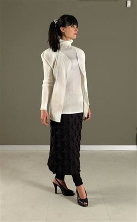 ISSEY MIYAKE Gonna nera luonguette di taglio morbido con rilievi di stella a quattro punte, anni '90 tg. M ISSEY MIYAKE 1990's long black pleated skirt with embossed star shaped pattern size: M
