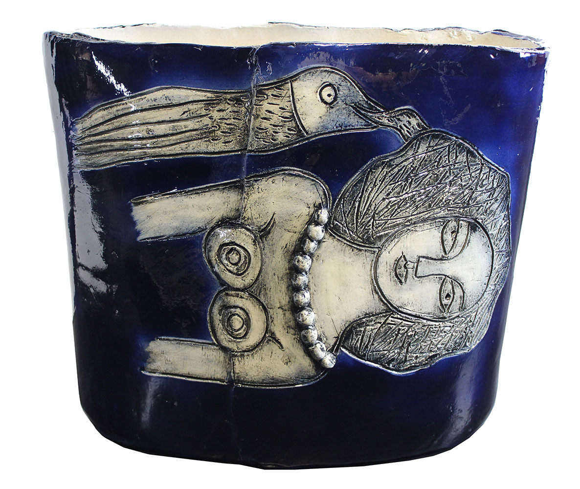 Corneille Treigny, 2004 vaso in ceramica e smalto colorato, cm. 42x48x20 firma, data e titolo incisi, etichetta Galleria Modenarte di Modena alla base, opera esposta alla mostra "CoBraA. 60th Anniversary" presso la Galleria Modenarte di Modena, 12 dicembre 2008 - 14 febbraio 2009, LOTTO PROVENIENTE DA IMPRESA E PERTANTO ASSOGGETTATO AD I.V.A. DEL 22% SUL PREZZO DI AGGIUDICAZIONE