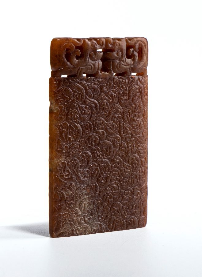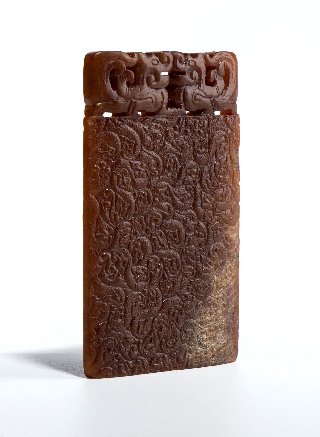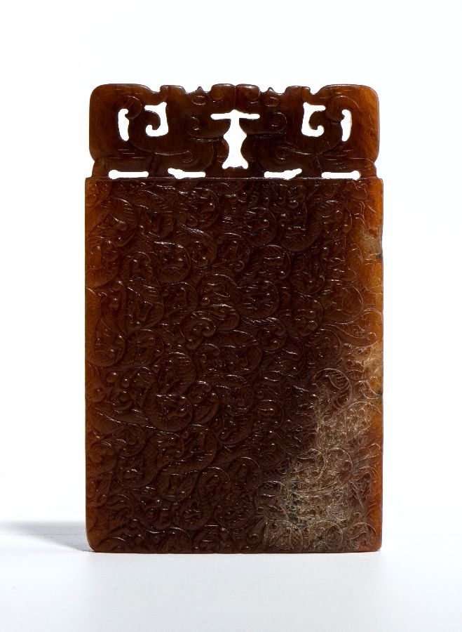 Sigillo in giada in stile della dinastia Han (206 a.C-220 d.C) con decoro a motivi di drago.