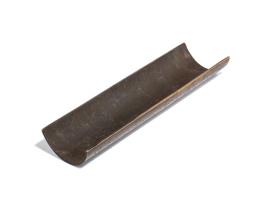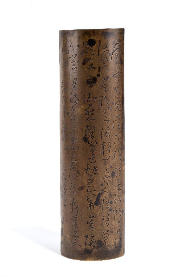 Porta-pennelli in rame decorato con calligrafia sul retro.