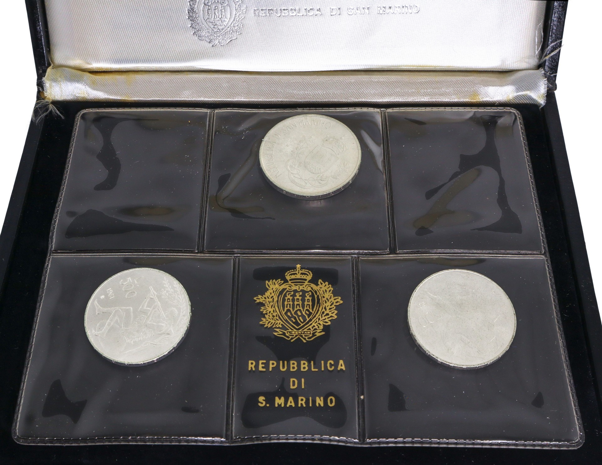 RECTO DELLE MONETE: Stemma della Repubblica sormontato dalla legenda REPUBBLICA DI SAN MARINO con motto "LIBERTAS"