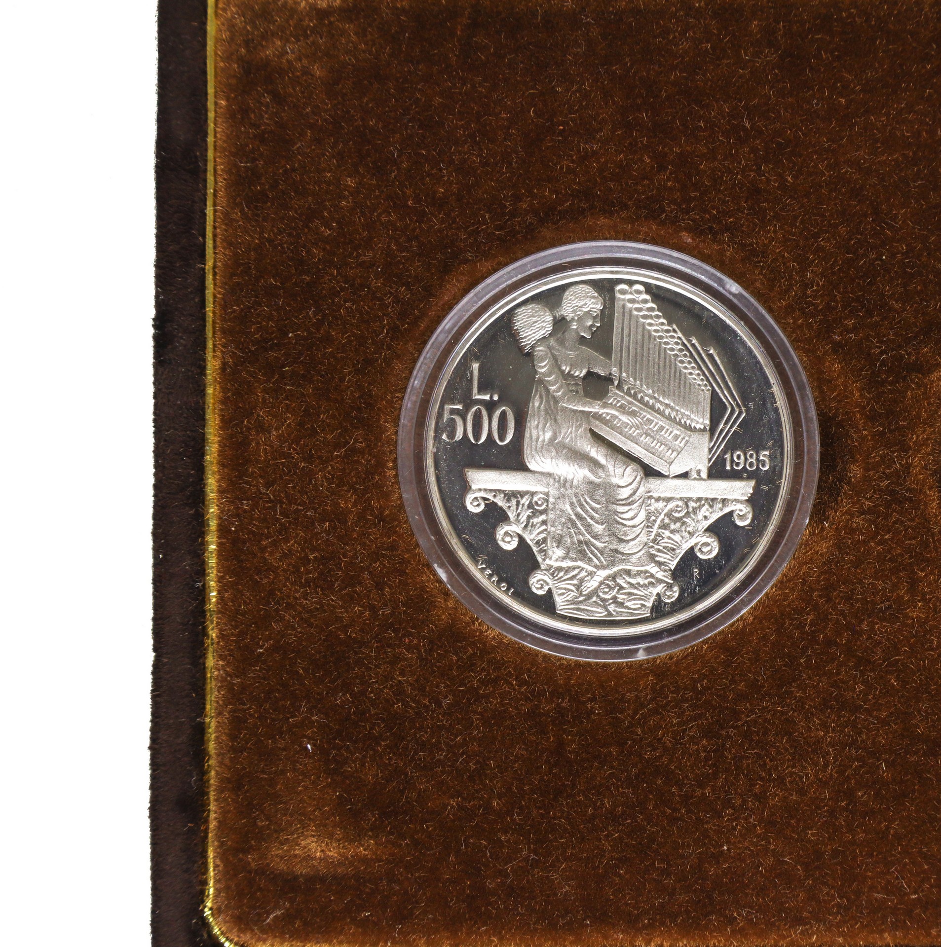 Dittico di monete d'argento a corso legale celebrative del III centenario della nascita di Johann Sebastian Bach, 1985