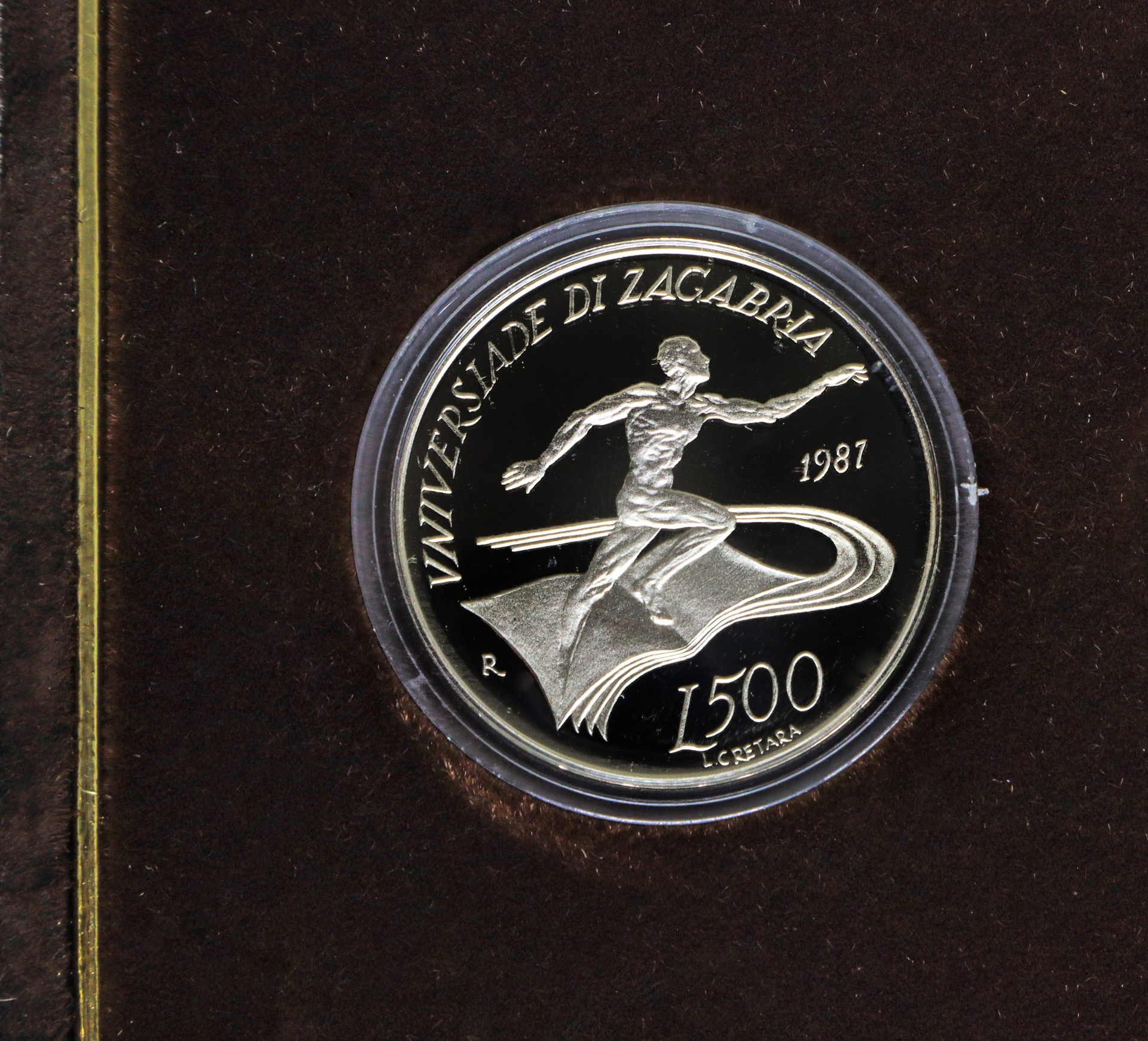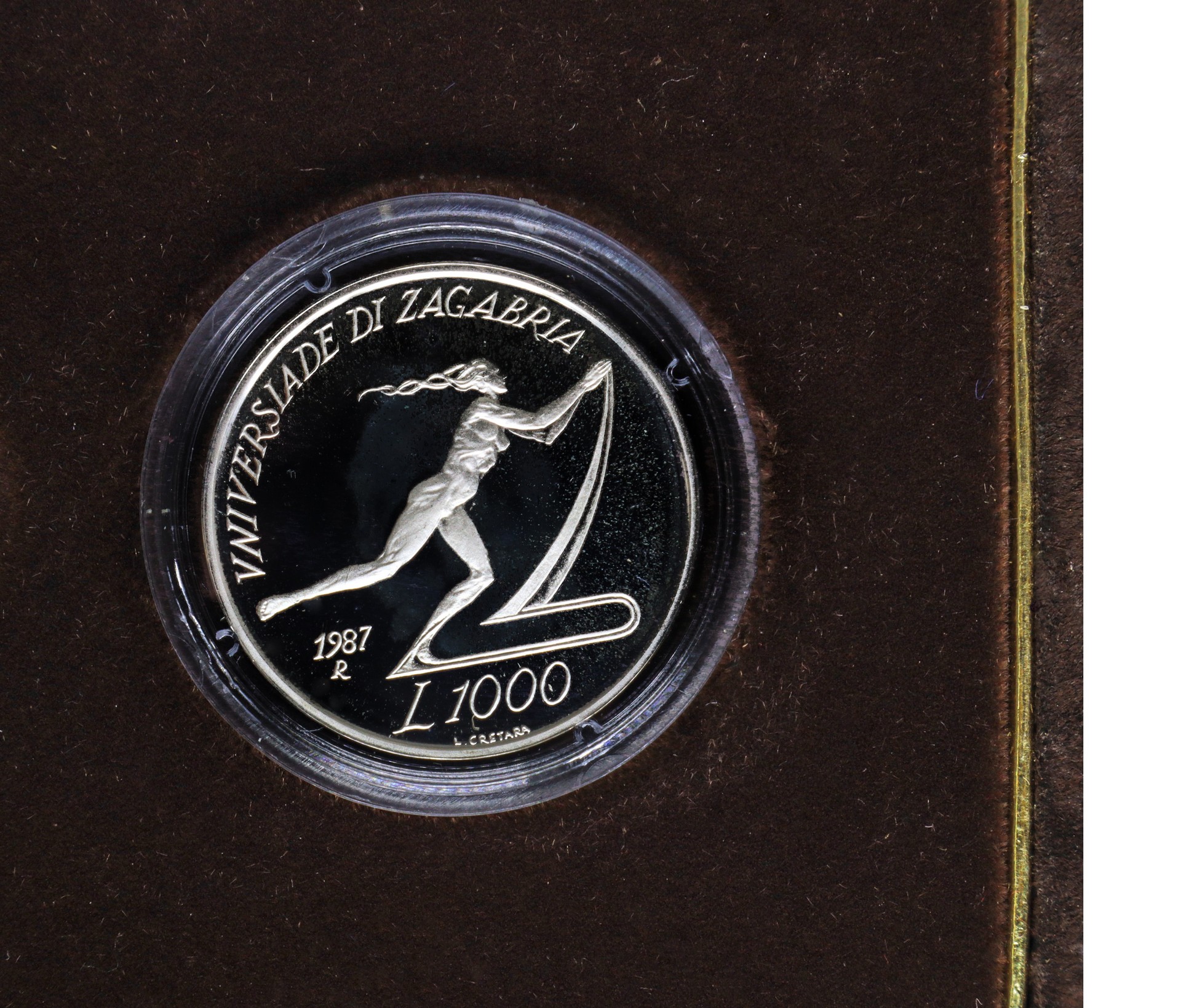 VERSO L.1000: Figura di un atleta completato dalla legenda UNIVERSIADI DI ZAGABRIA 1987 L.1000 L. CRETARA