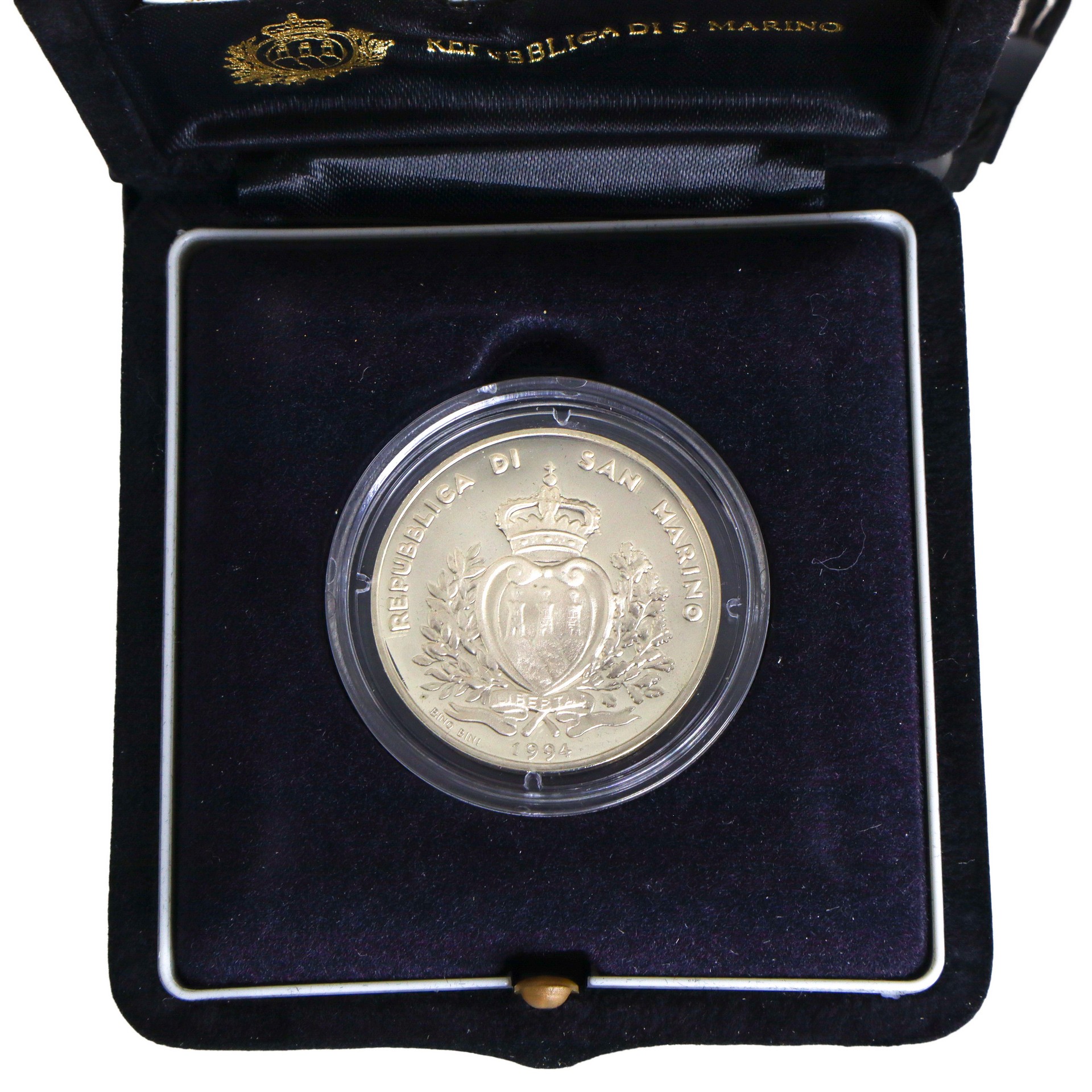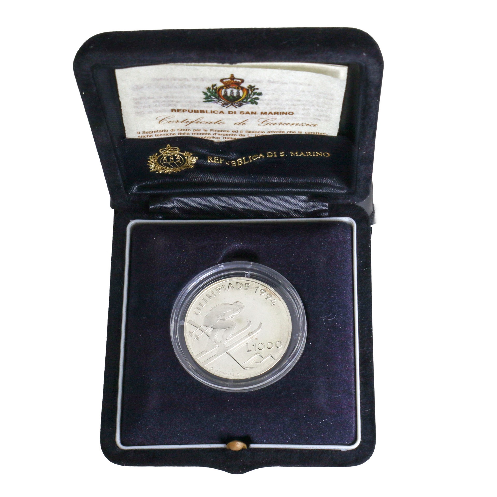 Olimpiadi invernali Lillehammer, moneta celebrativa, 1994 titolo argento 835% L.1000: GR. 14,6 diametro mm. 31,4 Repubblica di San Marino