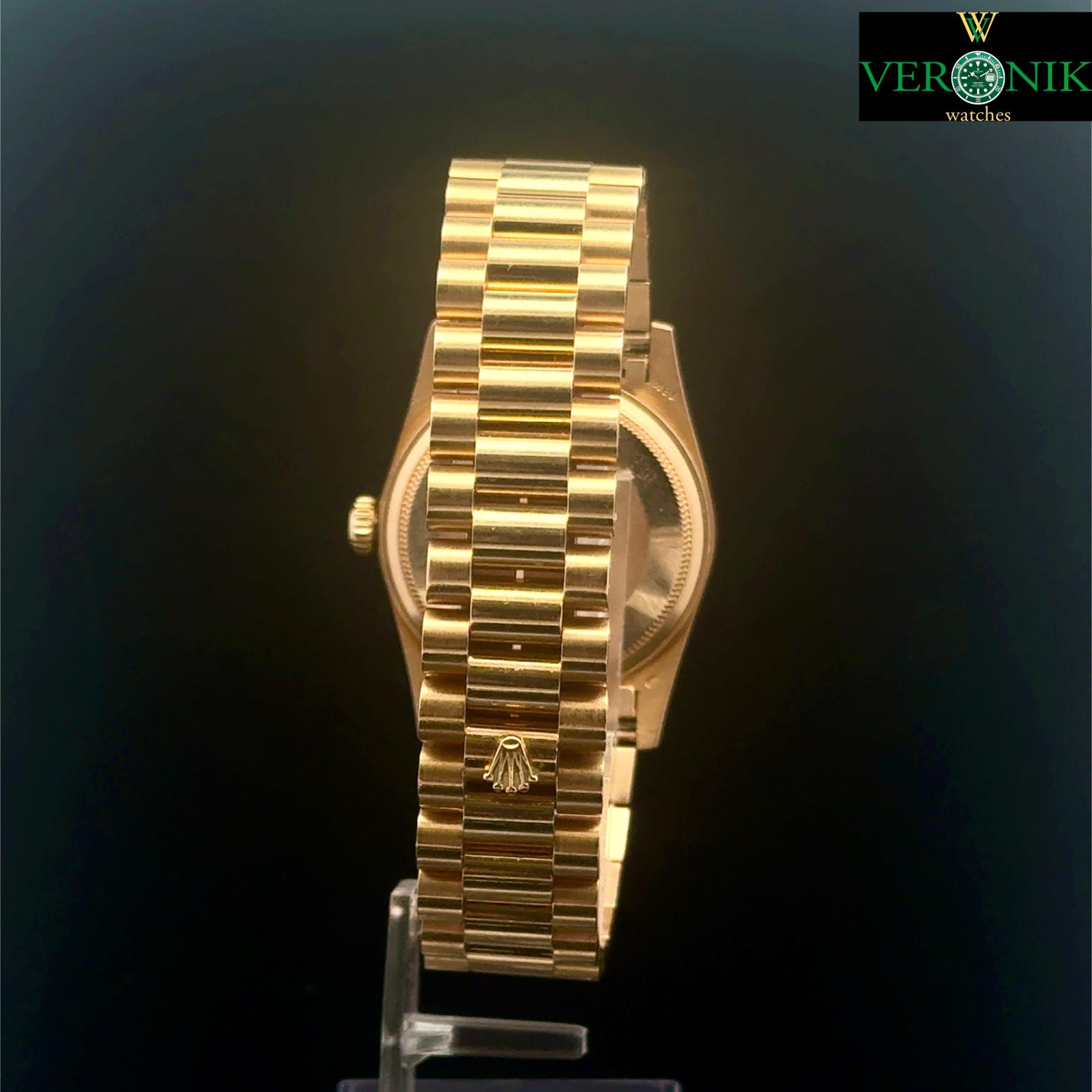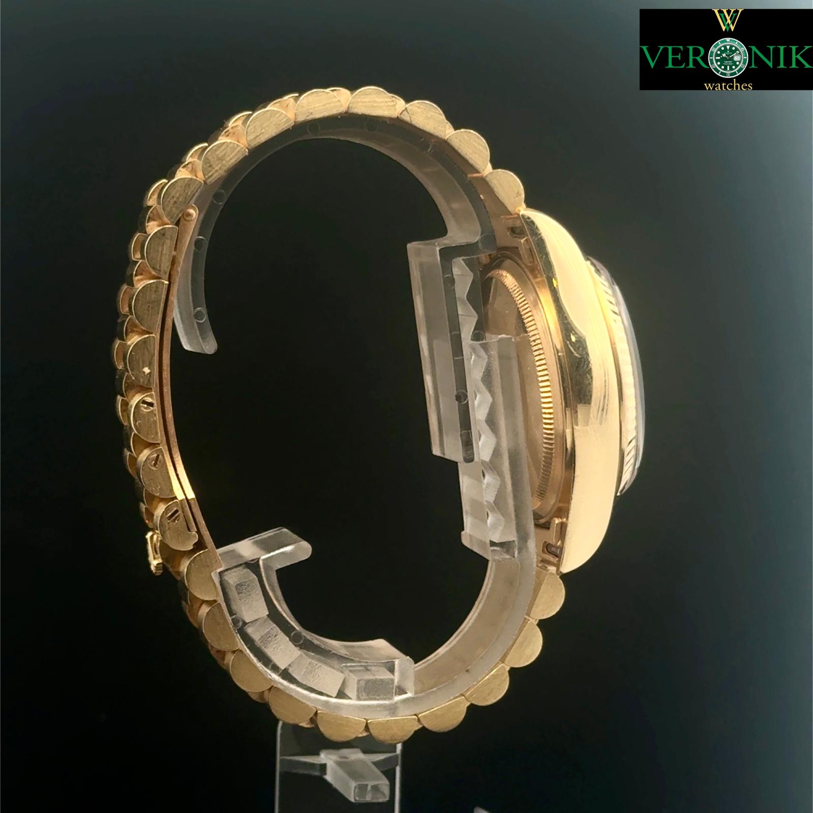 Marca Rolex Modello (Orologio) Day-Date 36 Numero di referenza 18038 Carica Automatico Materiale della cassa Oro giallo Materiale cinturino Oro giallo Anno di produzione 1986 Condizione Usato (Ottimo) L'articolo presenta segni di usura lievi, come ad esempio graffi leggeri, ma non percepibili al tatto. Corredo documenti Rolex, no box revisione da laboratorio interna effettuata nel 2025 Carica Automatico Cassa Materiale della cassa Oro giallo Diametro 36 mm Impermeabile 10 ATM Materiale lunetta Oro giallo Vetro Vetro plexi Cinturino Materiale cinturino Oro giallo Colore cinturino Oro Materiale chiusura Oro giallo - COMMISSIONE D’ASTA 25%