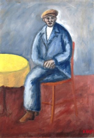 ROSAI OTTONE (Firenze 1895 - Ivrea 1957) "Uomo al tavolo giallo" Olio su tela...