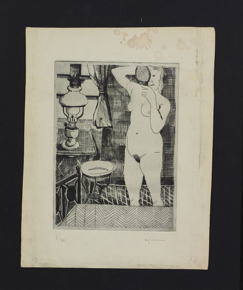 Ajmone Giuseppe Nudo incisione su carta, cm. 31x24 (lastra cm. 22x16), es. 8/30 firmata in basso a destra, sono presenti tracce di sporco e abrazioni ai bordi