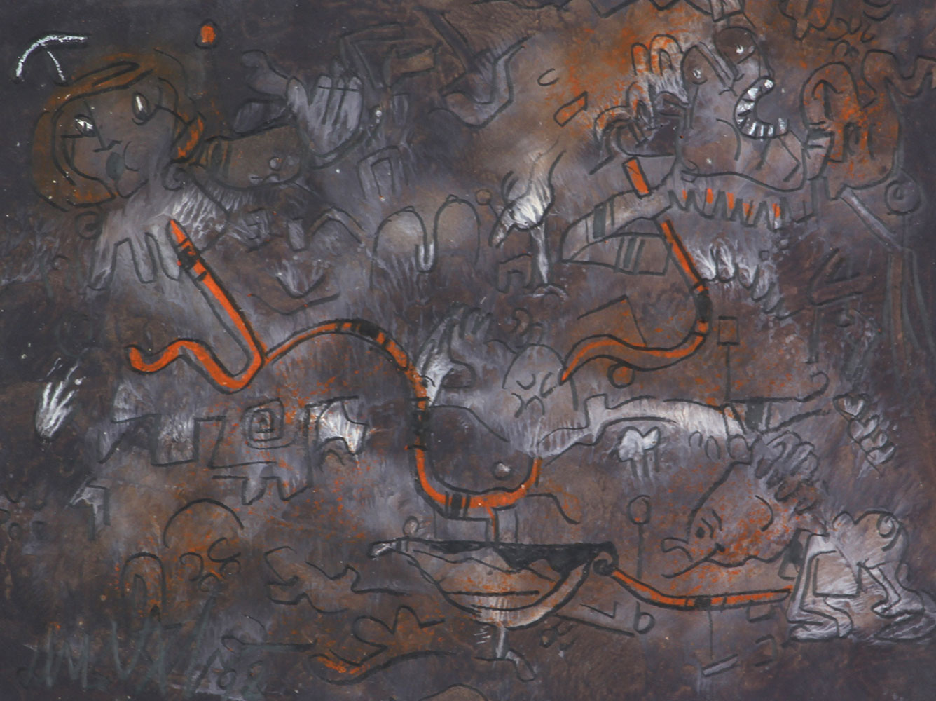 Delego Martino Nel Labirinto della Memoria..., 1998 tecnica mista su masonite, cm. 18x24 firmata e datata in basso a sinistra, firmata, intitolata e datata al retro