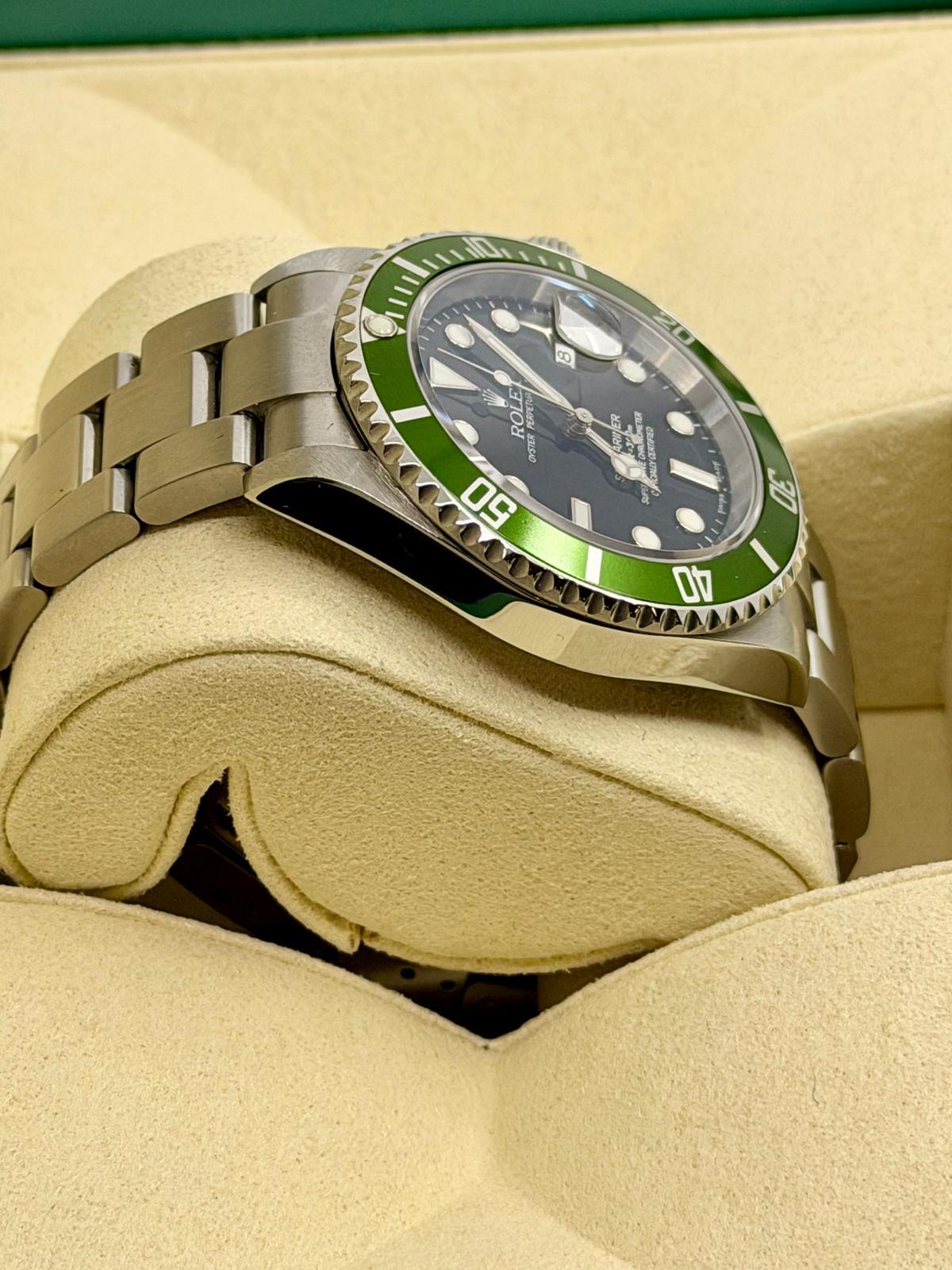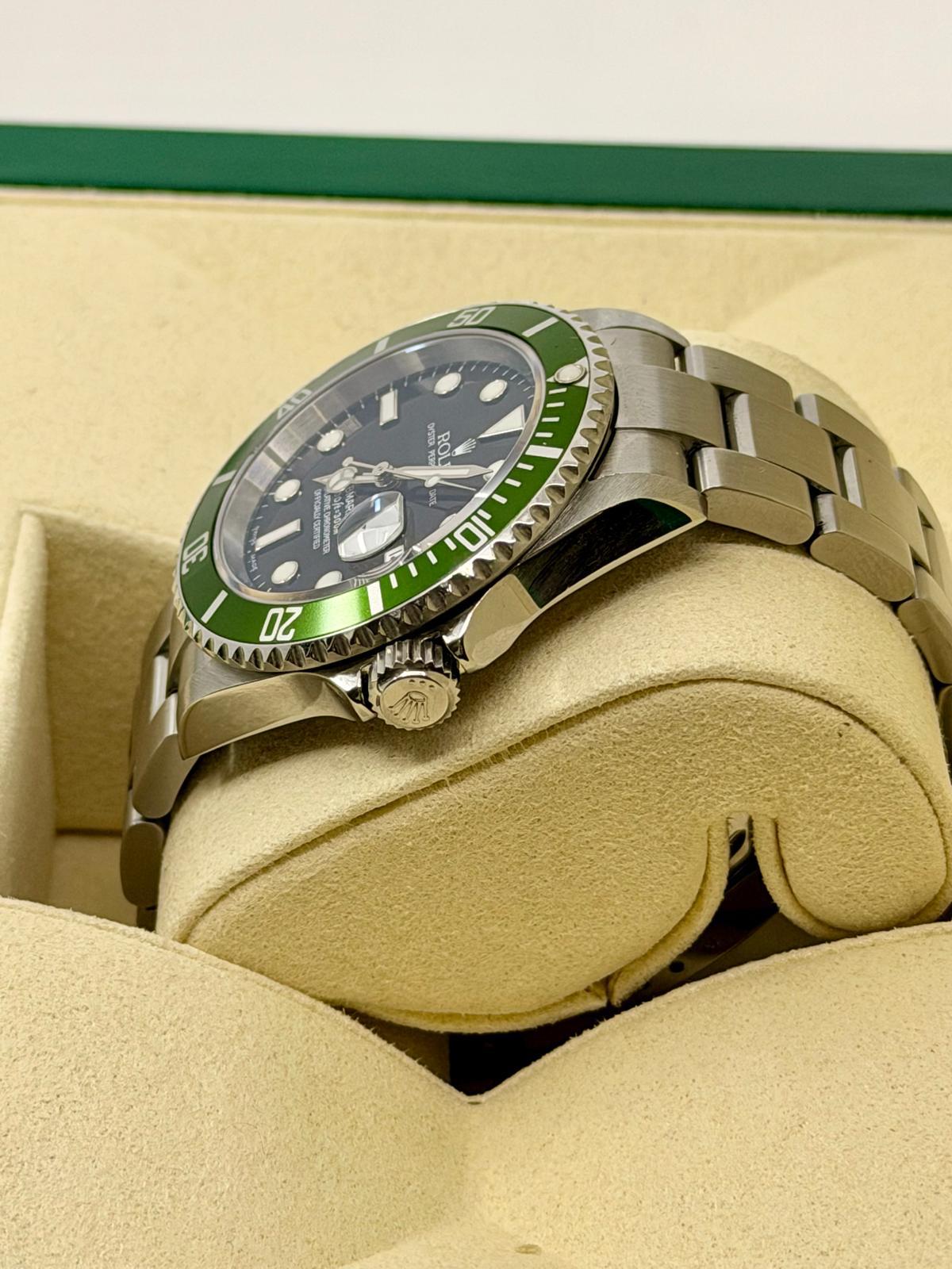 Marca Rolex Modello (Orologio) Submariner kermit Numero di referenza 16610LV Carica Automatico Materiale della cassa Acciaio Materiale cinturino Acciaio Condizione Usato (Ottimo) L'articolo presenta segni di usura lievi, come ad esempio graffi leggeri, ma non percepibili al tatto. documenti originali, no box Materiale della cassa Acciaio Diametro 40 mm Impermeabile 30 ATM Materiale lunetta Acciaio Vetro Vetro zaffiro Quadrante Nero Numeri sul quadrante Senza numeri Cinturino Materiale cinturino Acciaio Colore cinturino Acciaio Chiusura Déployante Materiale chiusura Acciaio Anno 2005 - COMMISSIONE D’ASTA 25%