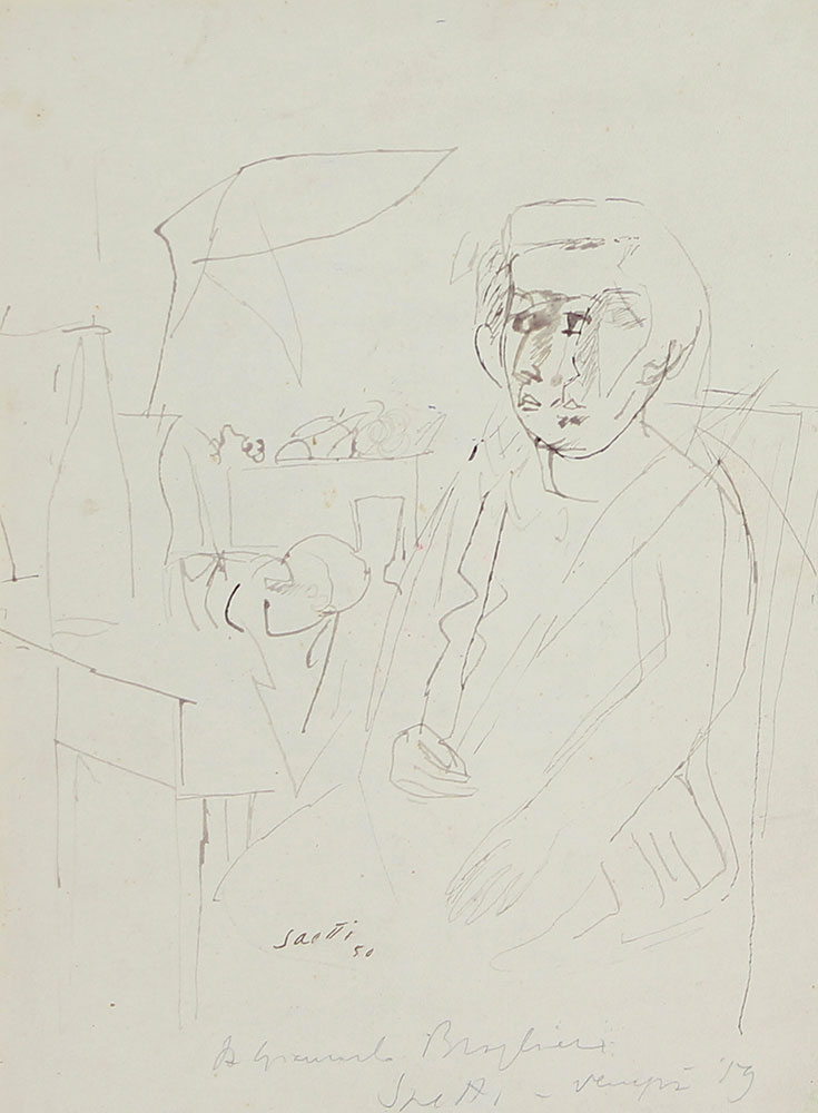 Saetti Bruno Senza titolo, 1950 china su carta, cm. 37,5x27,5 firmata, datata e dedicata in basso al centro senza cornice