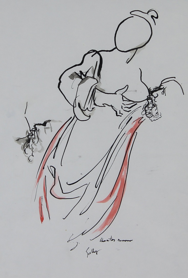 Guttuso Renato Charitas Romana china e acquarello su carta, cm. 41,5x30...