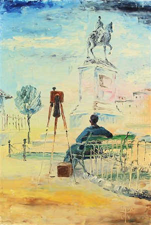 Vagarini Cesare Fotografo in attesa di clienti alla Lizza (Siena), 1957 olio...
