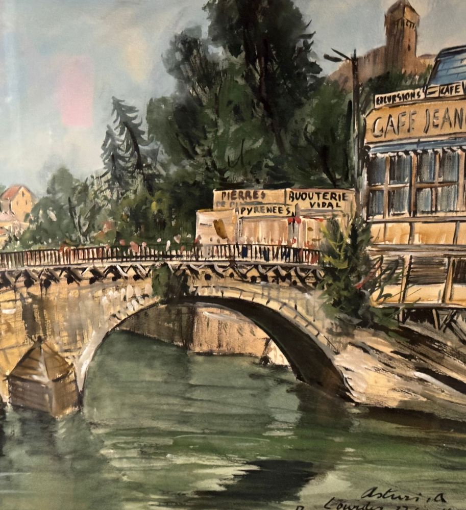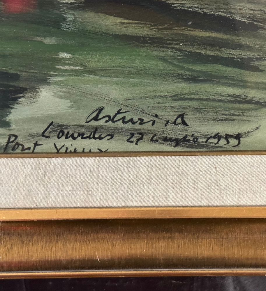 Dipinto olio su cartoncino, periodo XX secolo scuola italiana raffigurante Lourdes. Dimensioni compreso cornice: 87x67 cm. Dimensioni interno cornice: 70x50 cm. Firmato e datato in basso (Lourdes 27 Luglio 1959) a destra Antonio Asturi. Opera in buone condizioni.