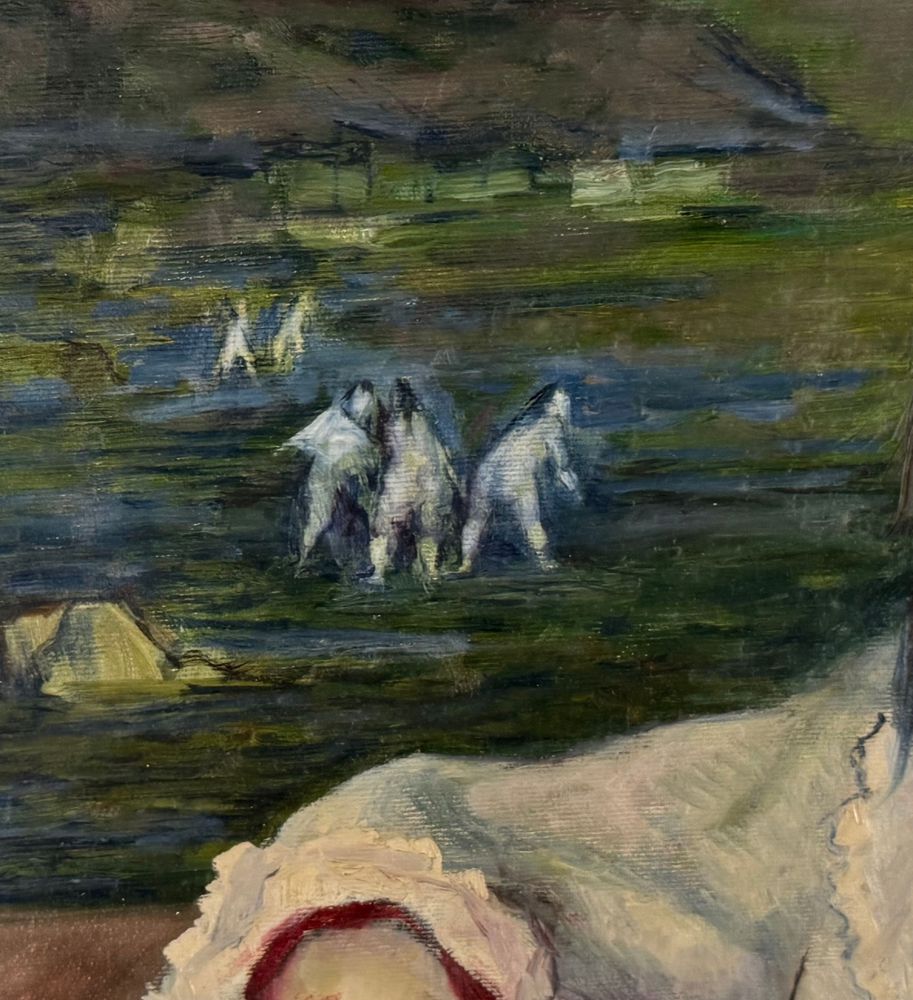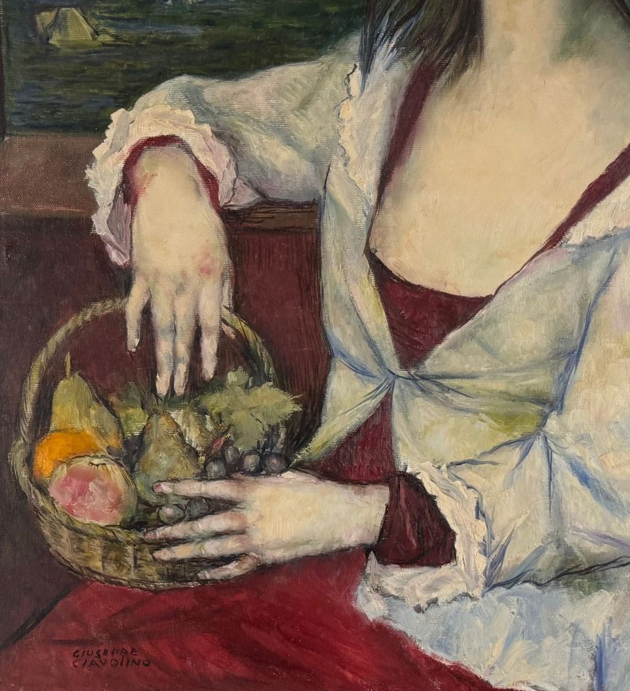 Dipinto olio su tela, periodo XX secolo scuola italiana raffigurante Donna alla finestra. Dimensioni compreso cornice: 75x95 cm. Dimensioni interno cornice: 60x80 cm. Firmato in basso a sinistra Giuseppe Ciavolino. Opera in buone condizioni.
