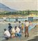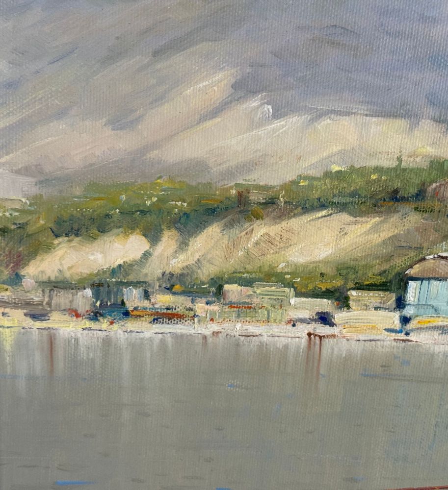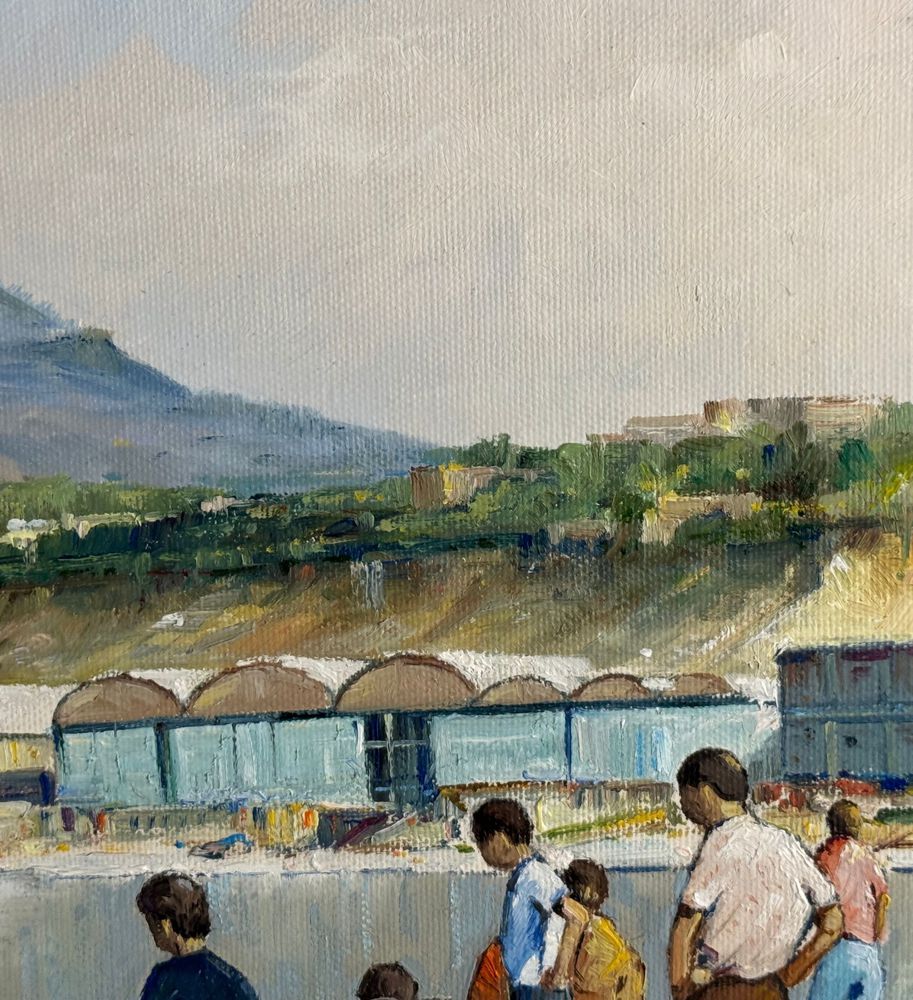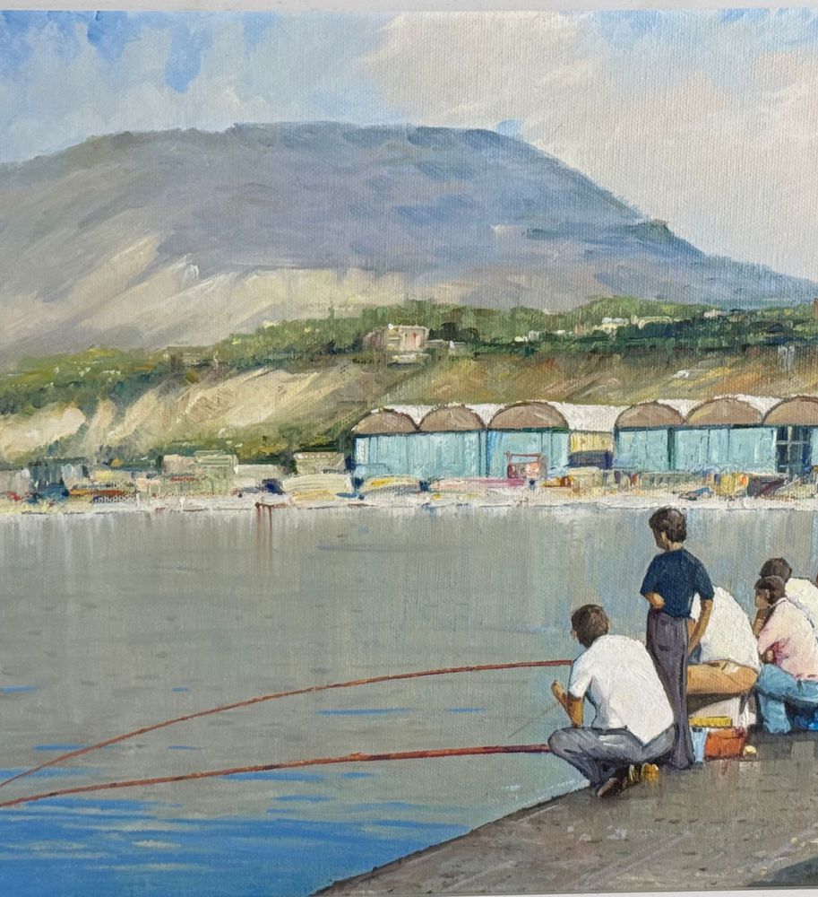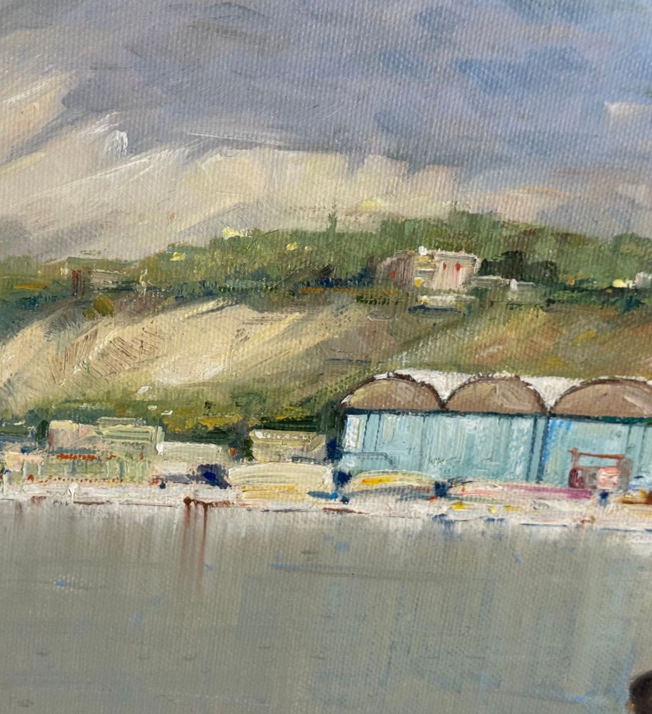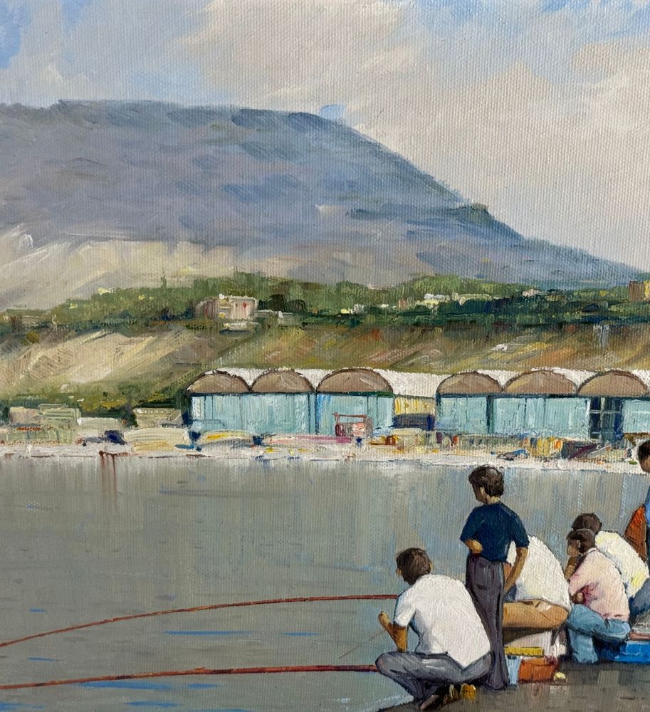 Dipinto olio su tela, periodo XX secolo, scuola Italiana, raffigurante Pescatori al porto. Dimensioni compreso cornice: 68x53 cm. Dimensioni interno cornice: 35x50 cm. Firmato a destra e autentica sul retro da artista non identificato. Opera in buone condizioni.
