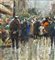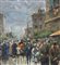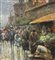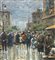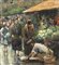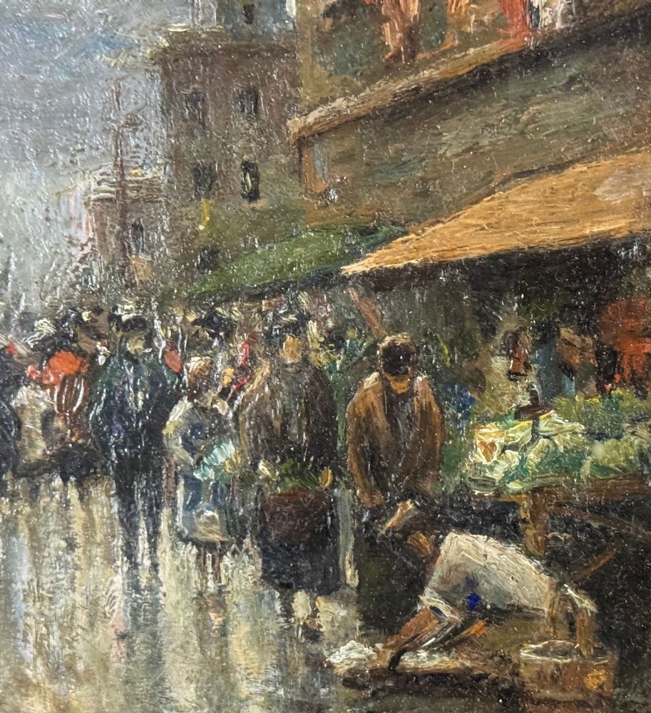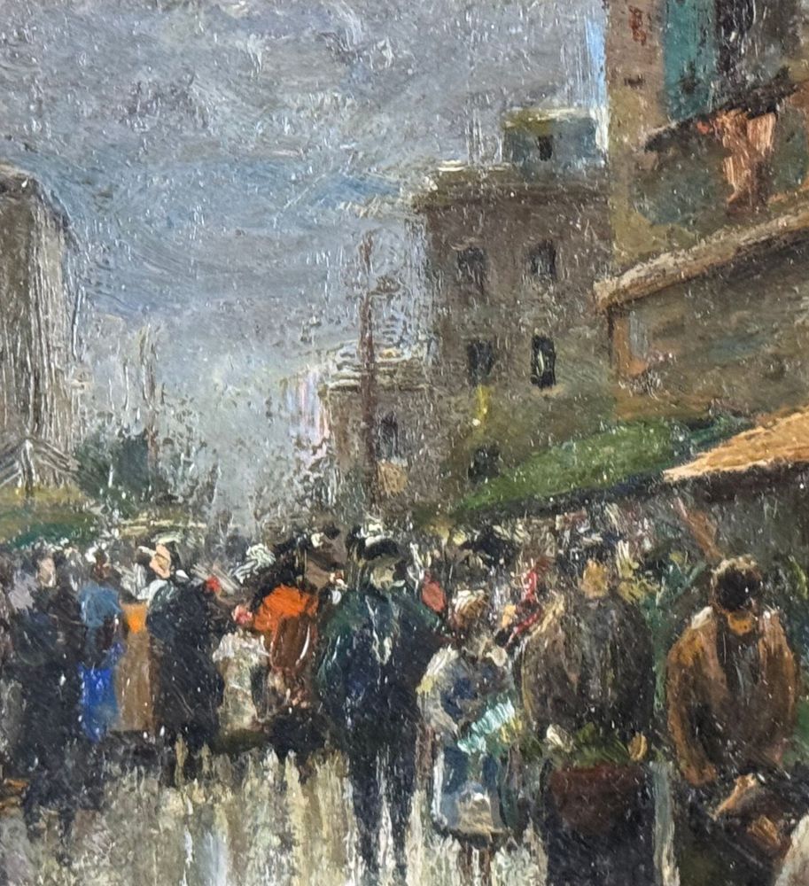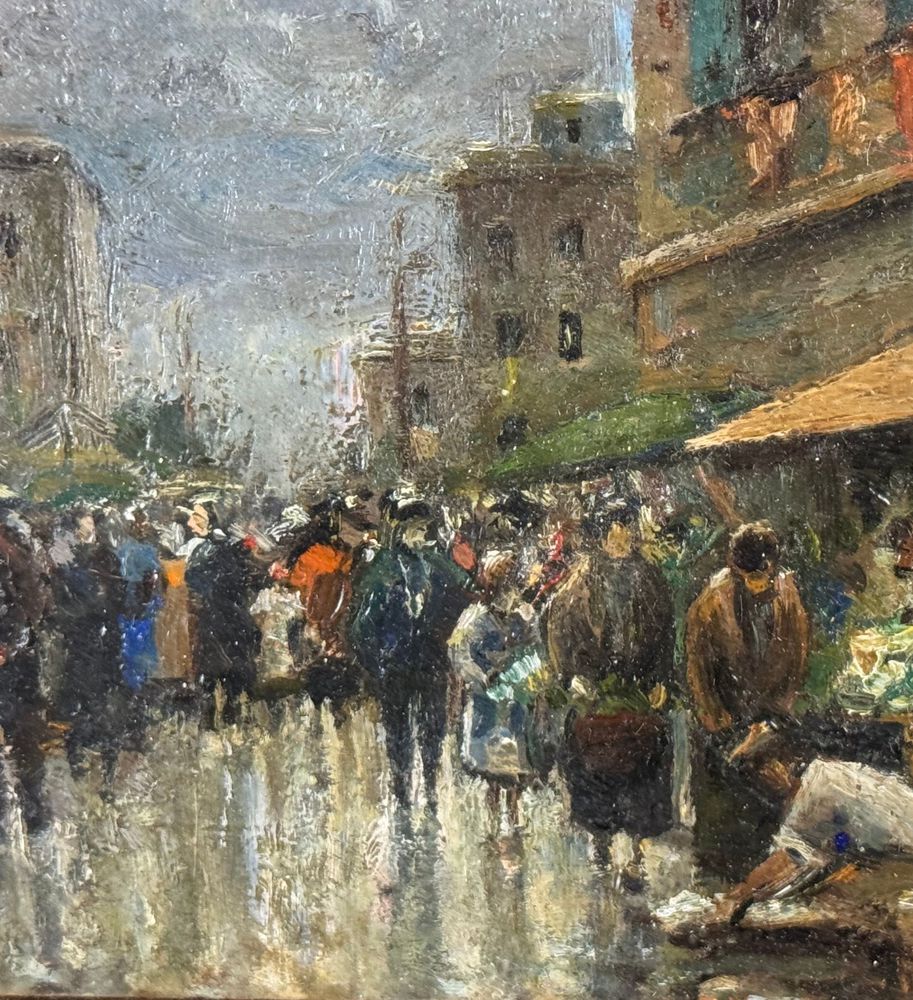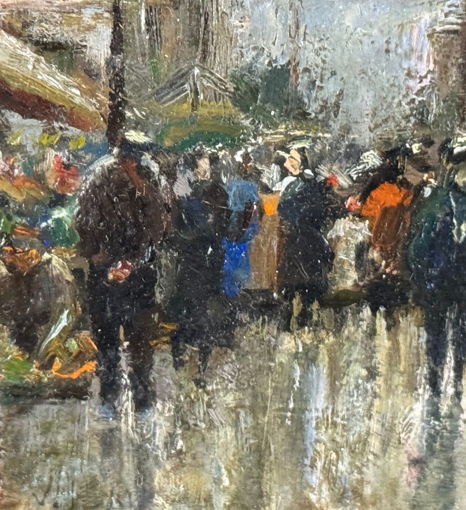 Dipinto olio su tavola, periodo XX secolo, scuola Italiana, raffigurante Scena di mercatino con personaggi. Dimensioni compreso cornice: 35x35 cm. Dimensioni interno cornice: 14x12 cm. Traccia di firma in basso a sinistra Vincenzo Migliaro. Opera in buone condizioni.