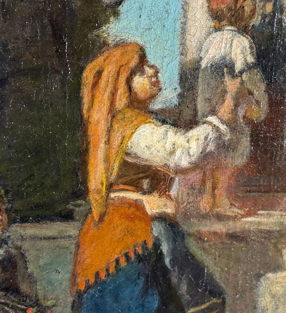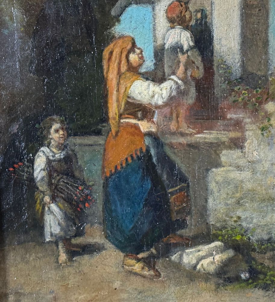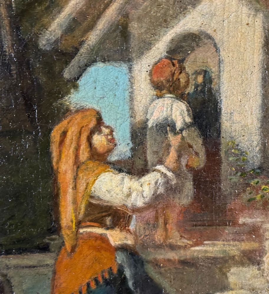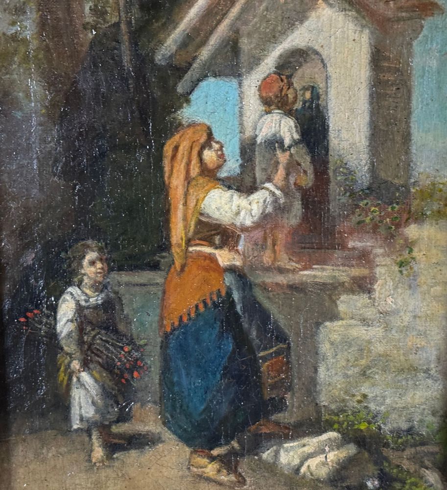 Dipinto olio su tela, periodo XIX/XX secolo, scuola Italiana, raffigurante Personaggi in visita alla cappella. Dimensioni compreso cornice: 39x51 cm. Dimensioni interno cornice: 23x36 cm. Firmato in basso a sinistra Simonetti ( 1843). Opera in buone condizioni e di ottima qualità artistica. Con lievi segni di vissuto come da foto allegate.