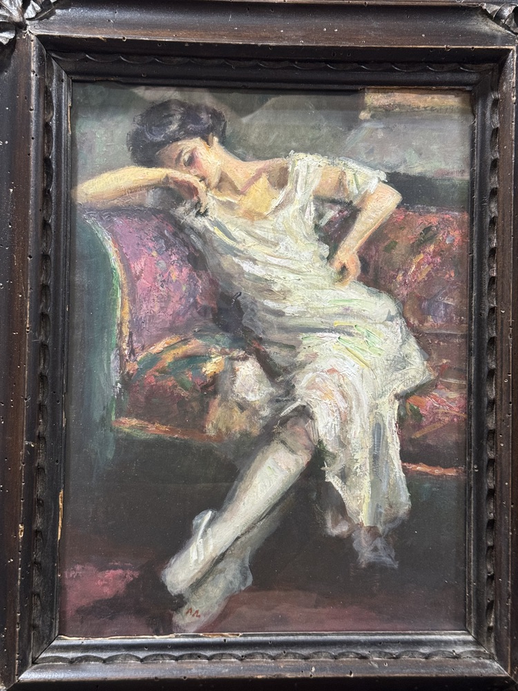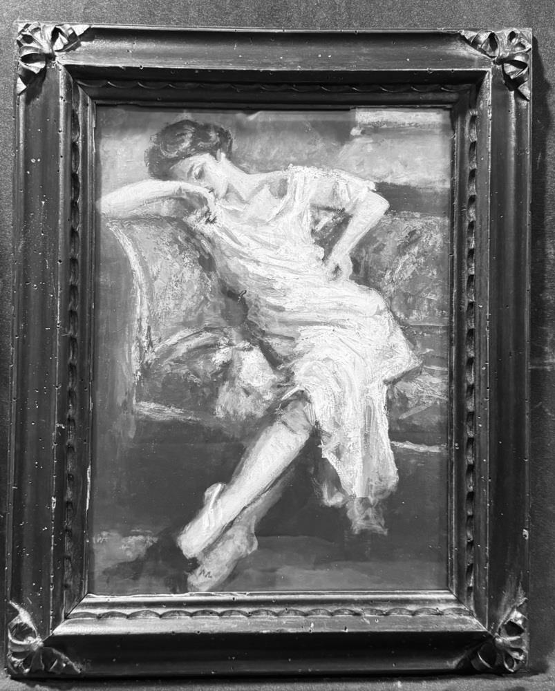 Dipinto olio su pannello, periodo XX secolo, scuola Italiana raffigurante Ritratto di donna su poltrona. Dimensioni compreso cornice: 41x51 cm. Dimensioni interno cornice: 30x40 cm. Da artista anonimo. Opera in buone condizioni. Cornice difetti e mancanze come da foto allegate.
