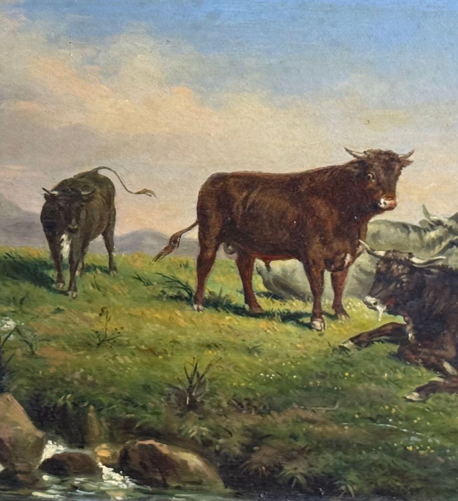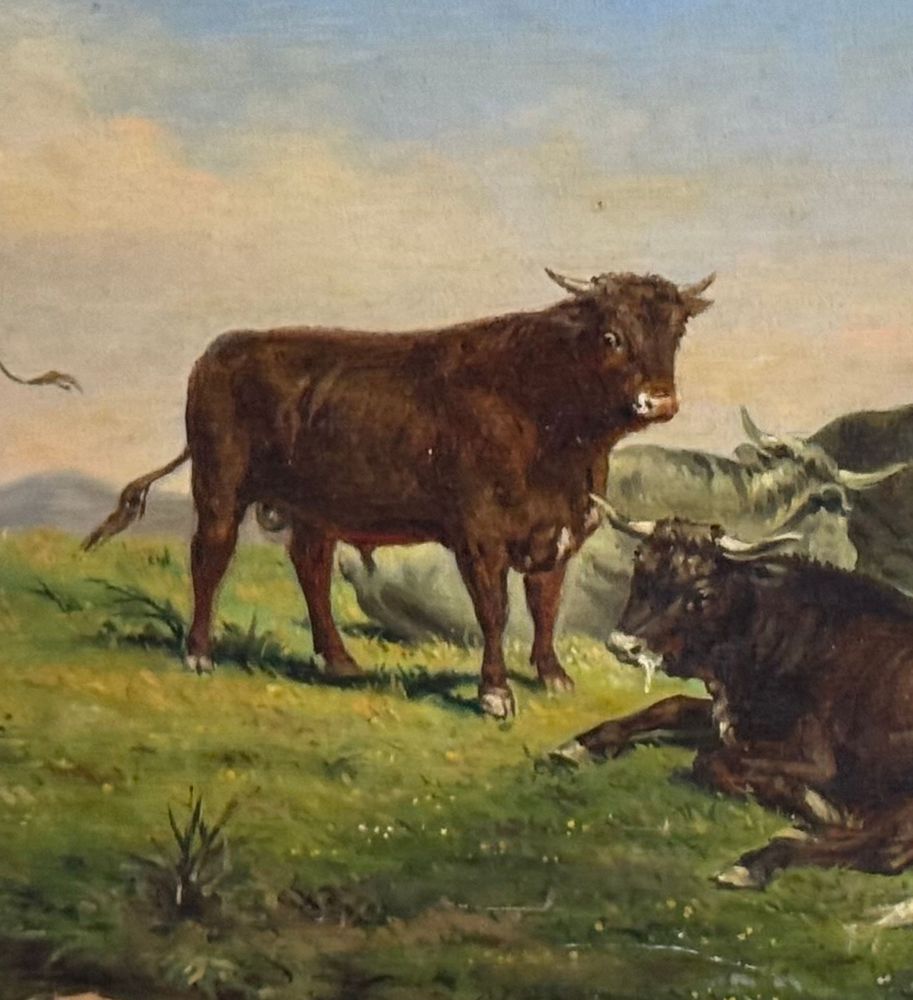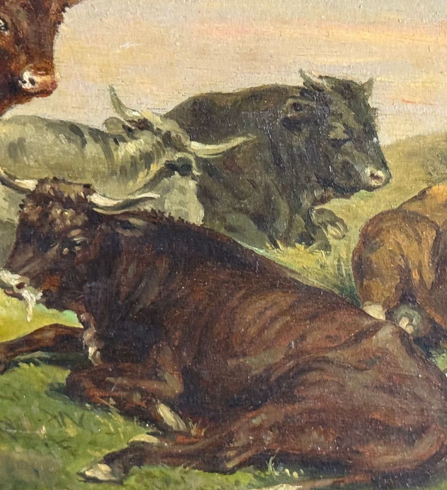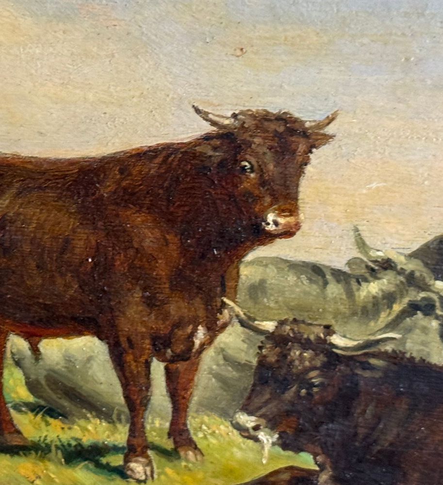 Dipinto olio su tavola, periodo XIX secolo, scuola Italiana, raffigurante Bestiame. Dimensioni compreso cornice: 57x47 cm. Dimensioni interno cornice: 24x35 cm. Artista anonimo. Opera in buone condizioni. Cornice con segni di vissuto come da foto allegate.