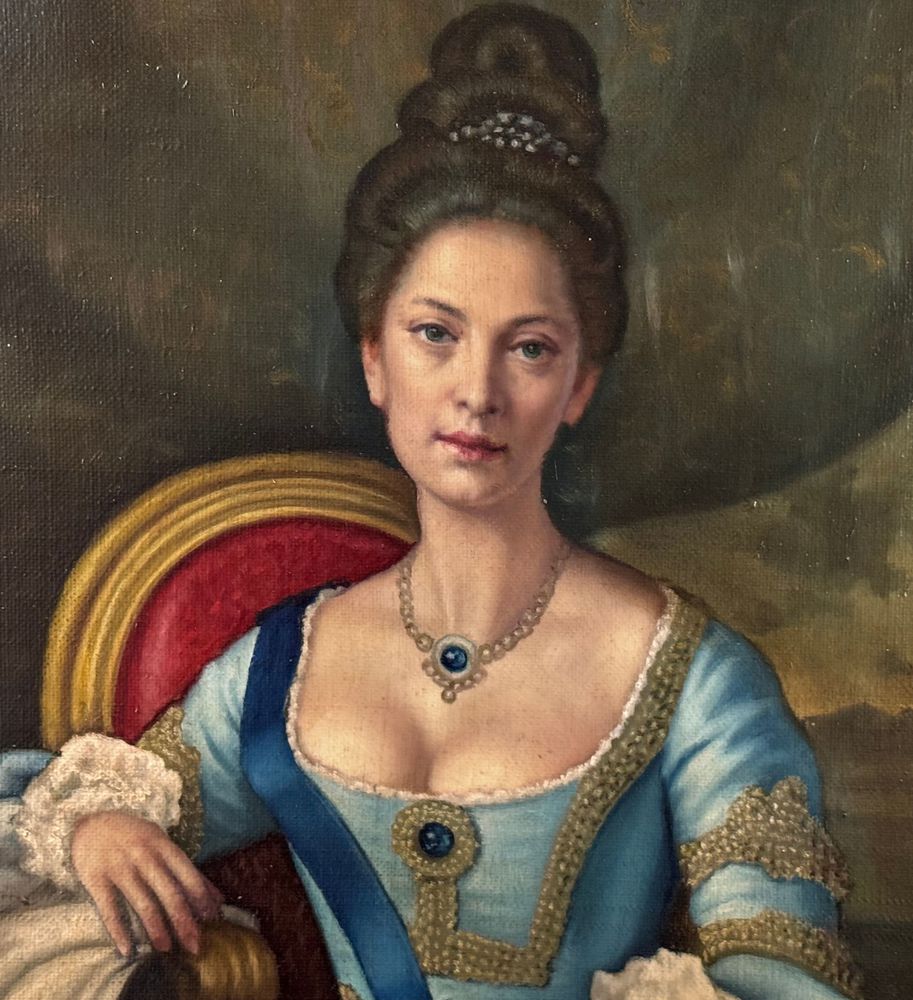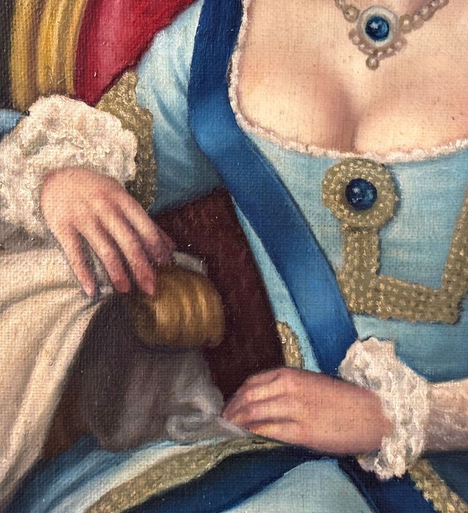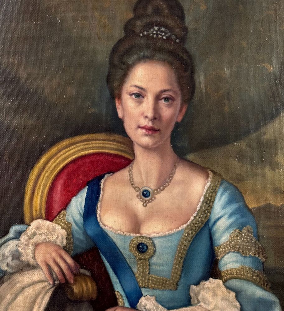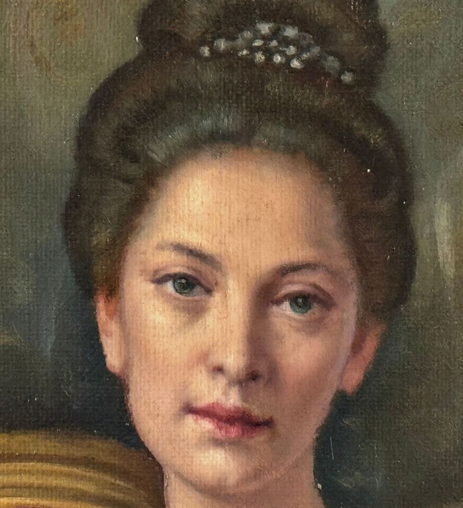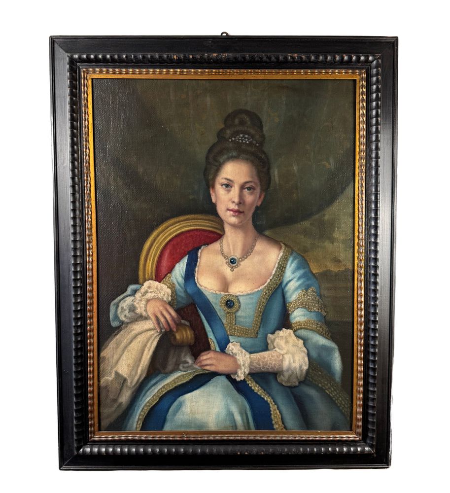 Dipinto olio su tela, periodo XX secolo scuola Italiana, raffigurante Ritratto di Nobil donna. Dimensioni compreso cornice: 73x93 cm. Dimensioni interno cornice: 57x77 cm. Da artista anonimo. Opera in ottime condizioni.