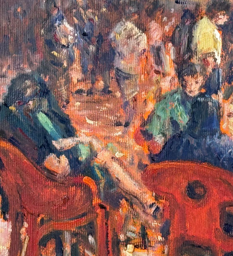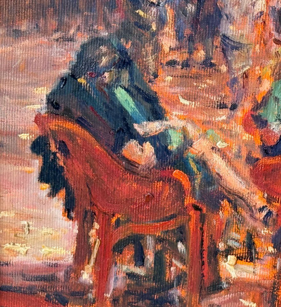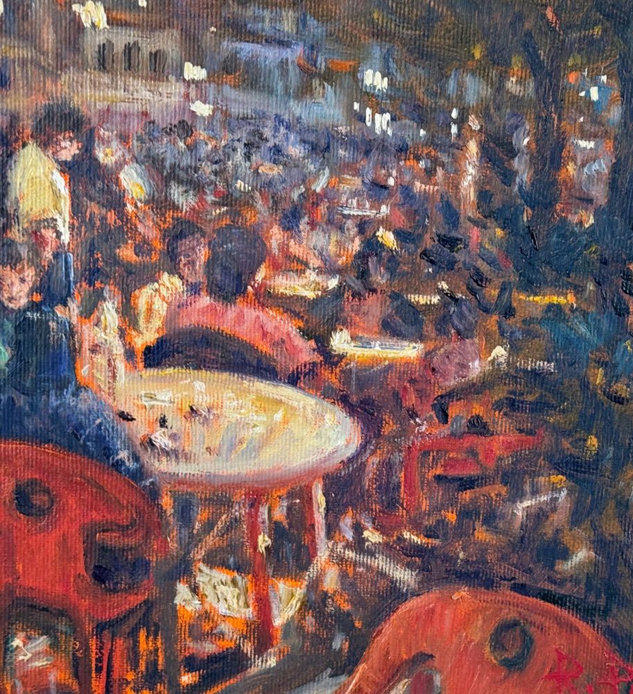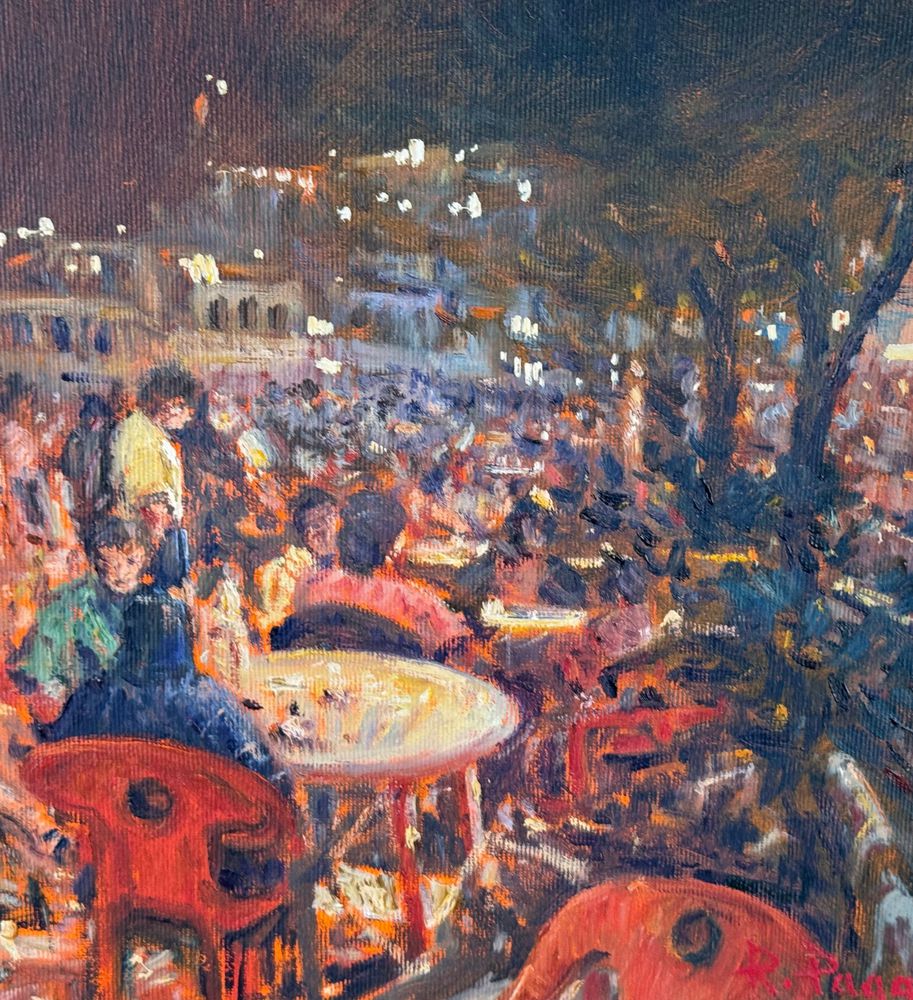 Dipinto olio su tela, periodo XX secolo scuola Italiana, raffigurante "Allo Snack bar (Diamante)". Dimensioni compreso cornice: 60x50 cm. Dimensioni interno cornice: 40x30 cm. Reca firma in basso a destra e autentica sul retro Roberto Pagano. Opera in buone condizioni.