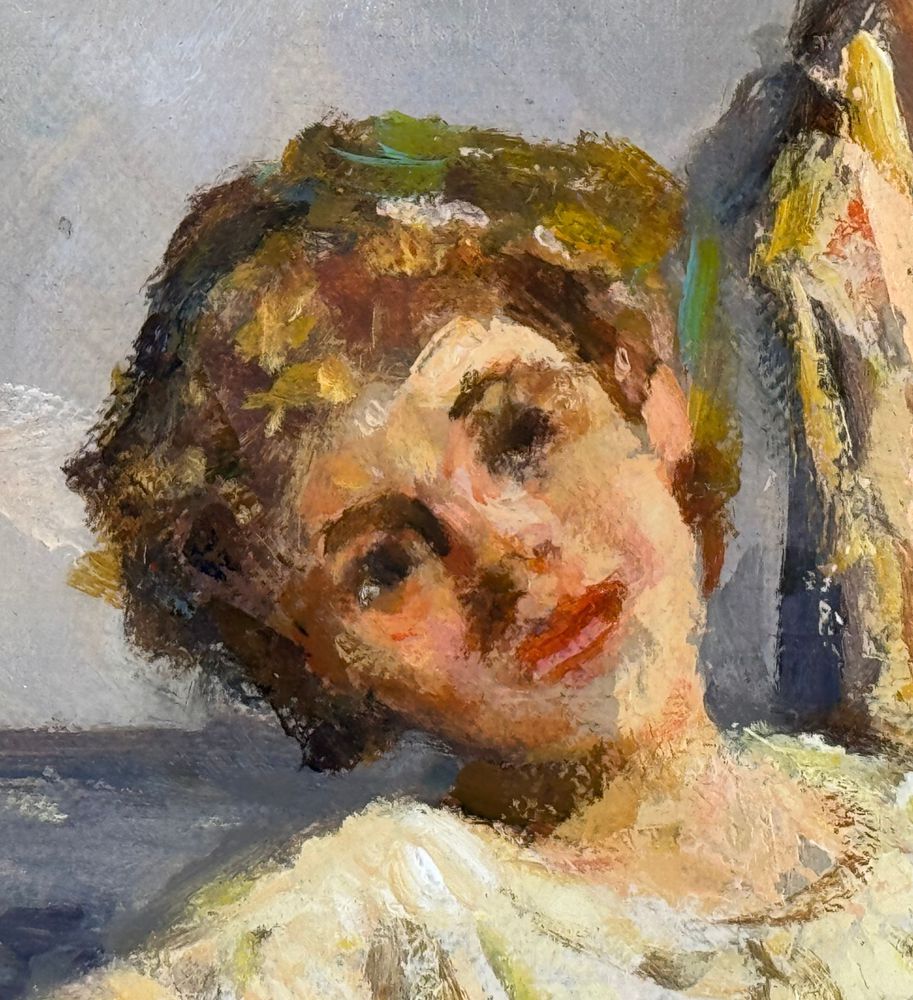 Dipinto olio su tela, periodo XX secolo, scuola Italiana, raffigurante Donna su marina. Tratto da un'opera di Giuliano Bartolomeo. Dimensioni: 50x60 cm. Reca firma in basso a destra artista non identificato. Opera in ottime condizioni e di eccellente qualità artistica.