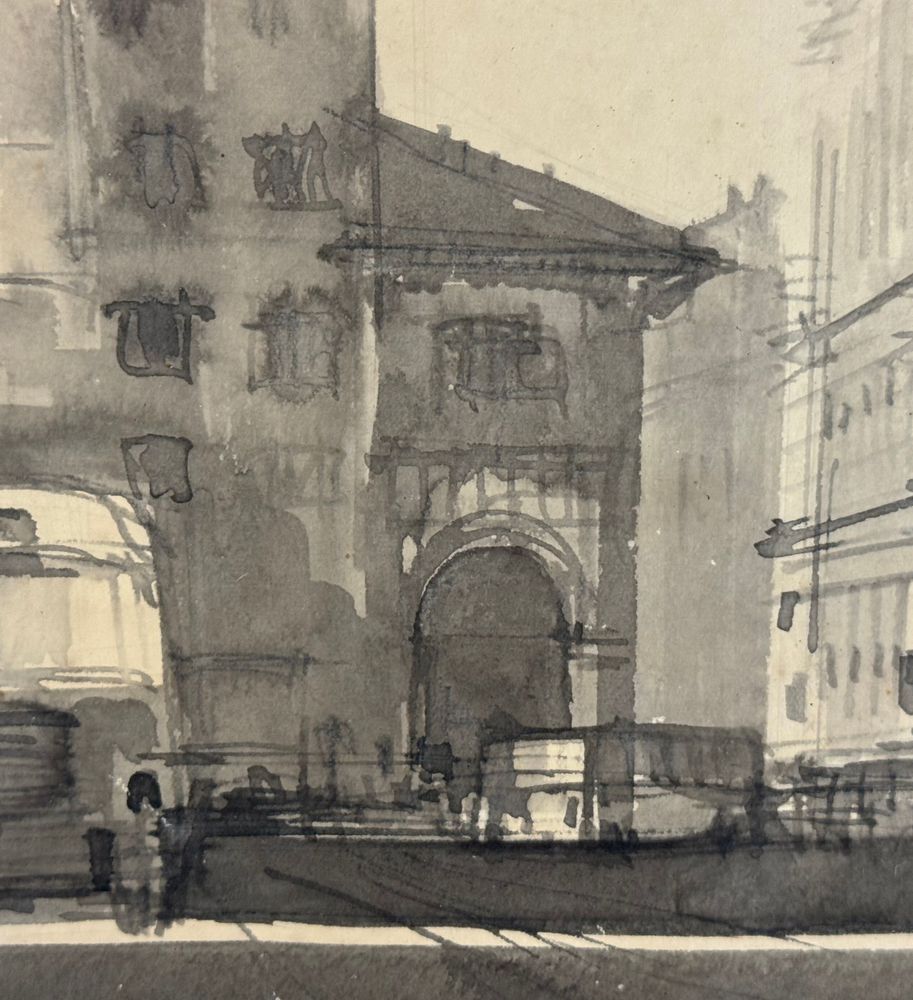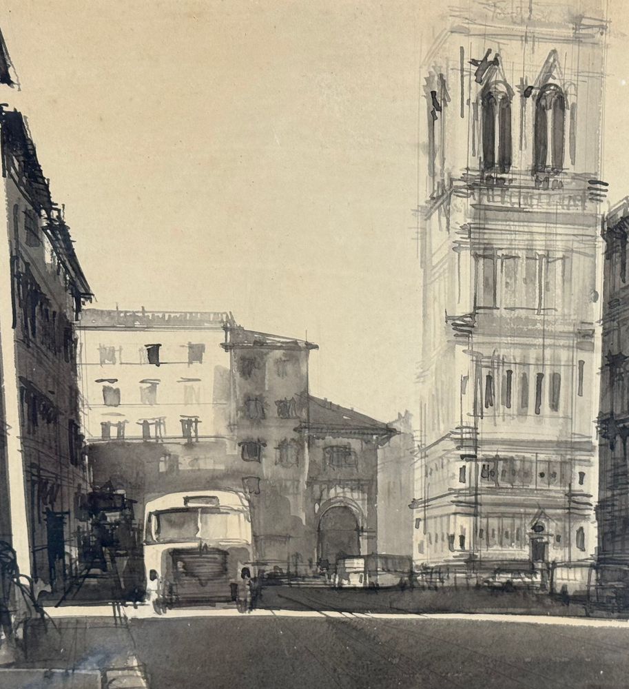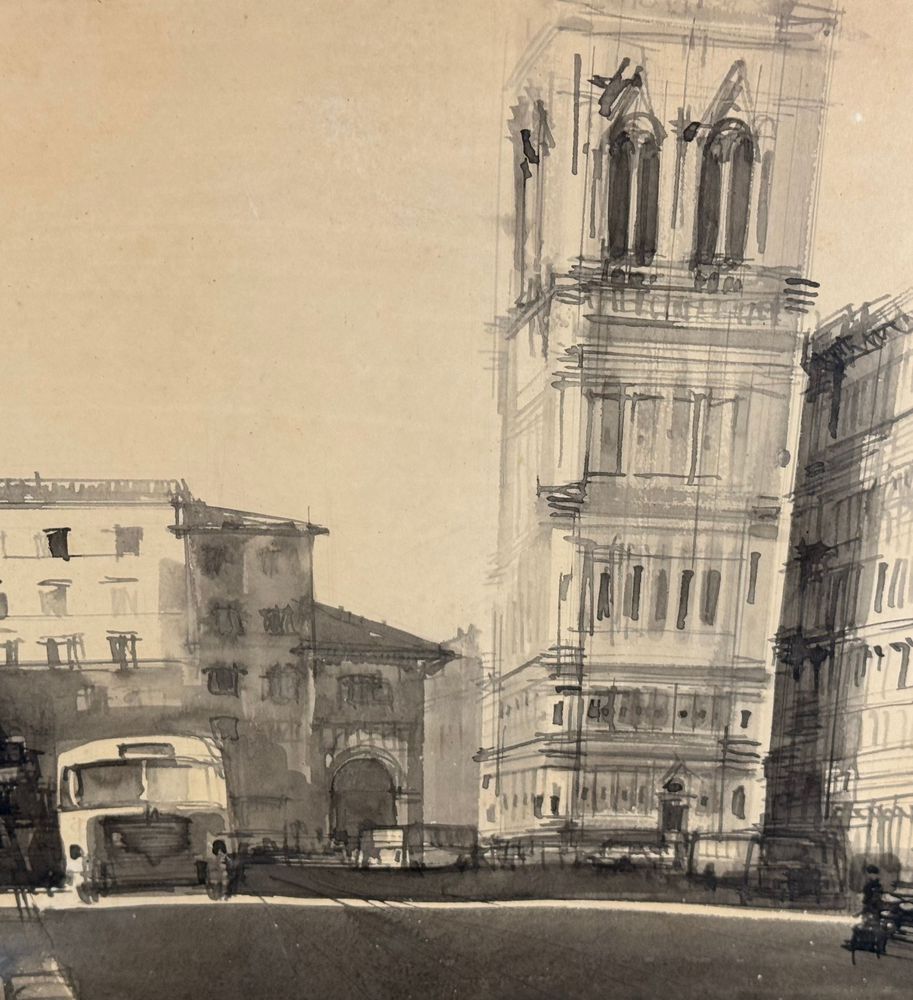 Dipinto tecnica mista su carta, periodo XX secolo scuola italiana raffigurante Strada con personaggi. Dimensioni compreso cornice: 66x56 cm. Dimensioni interno cornice: 49x39 cm. Artista anonimo. Opera in buone condizioni con lievi segni di vissuto come da foto allegate.