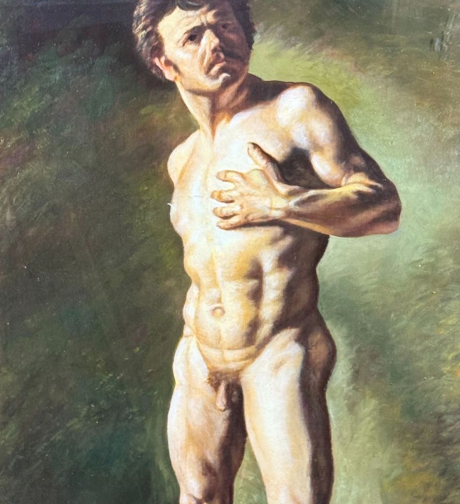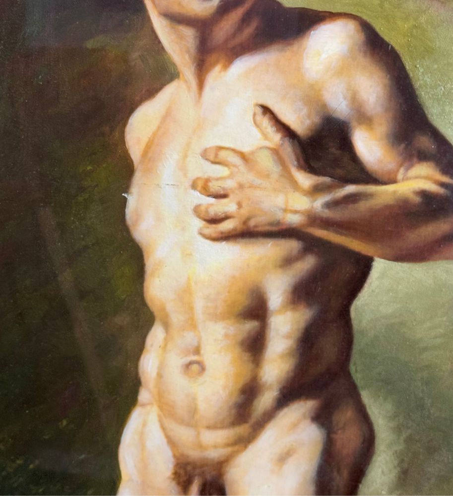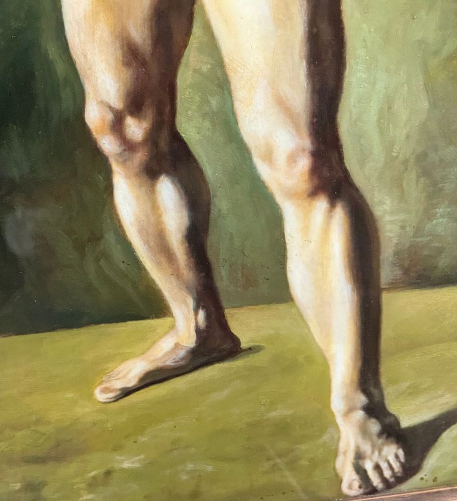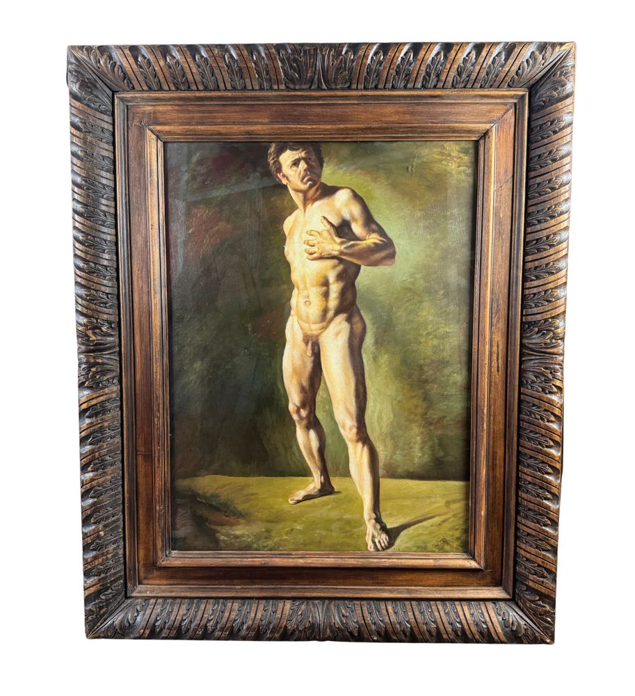 Dipinto olio su pannello, artista accademico, periodo prima metà del XX secolo scuola Italiana, raffigurante Nudo maschile. Dimensioni compreso cornice: 92x112 cm. Dimensioni interno cornice: 61x81 cm . Artista anonimo. Opera in buone condizioni.