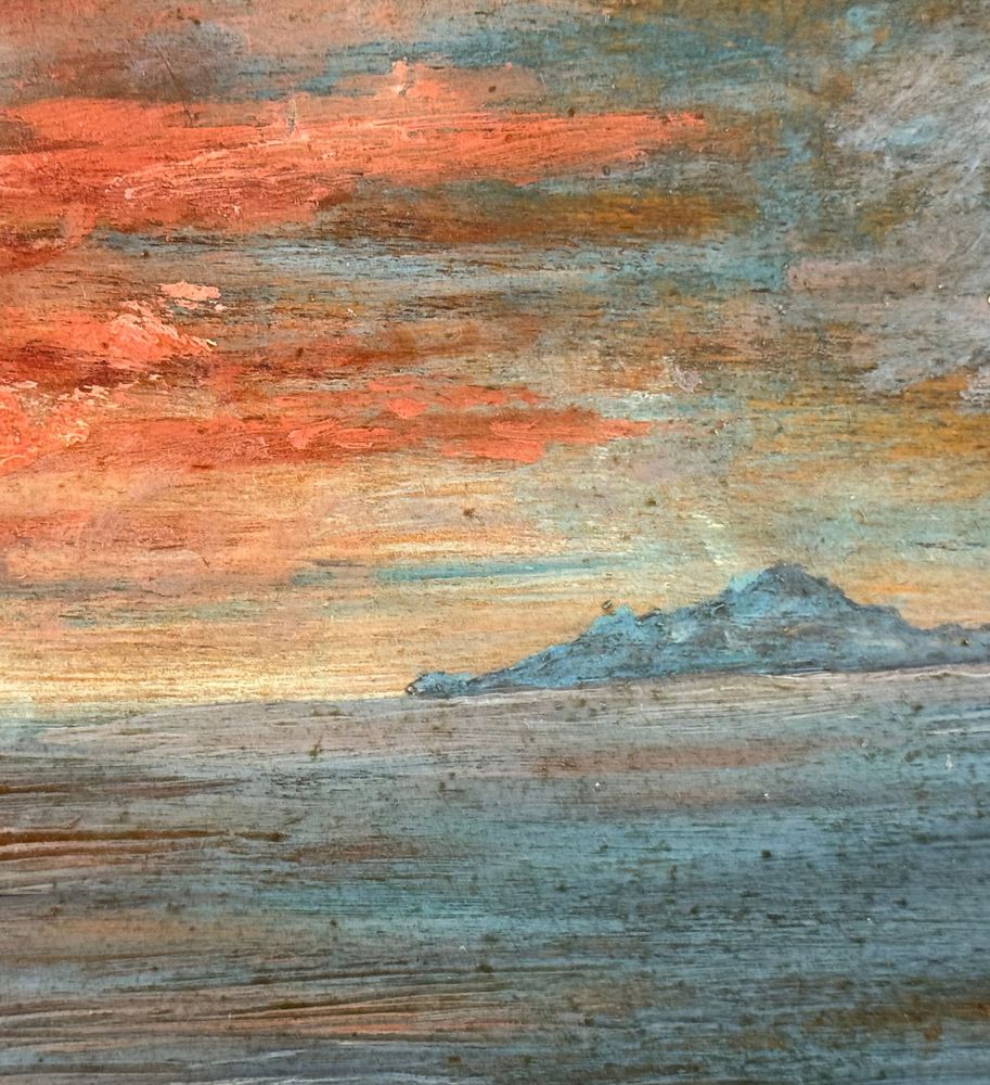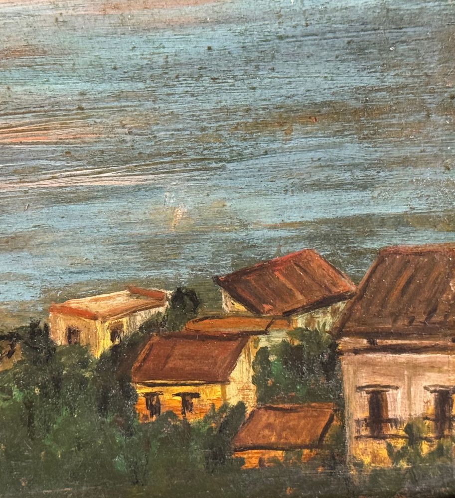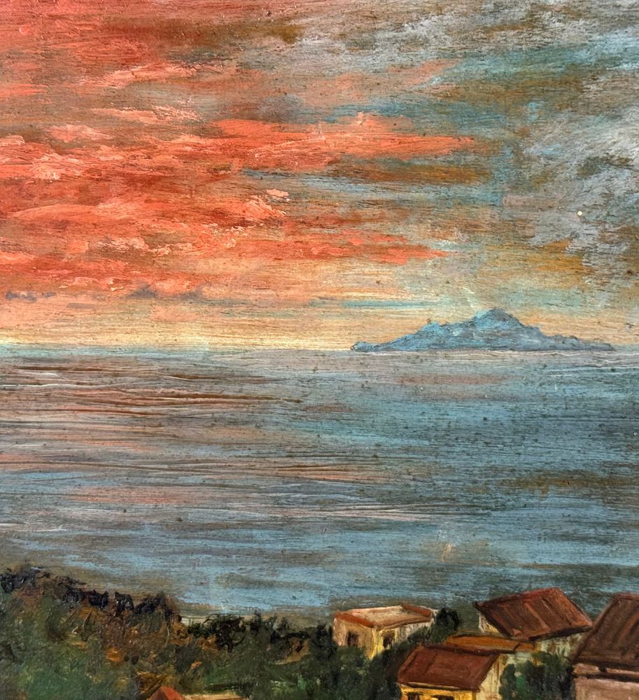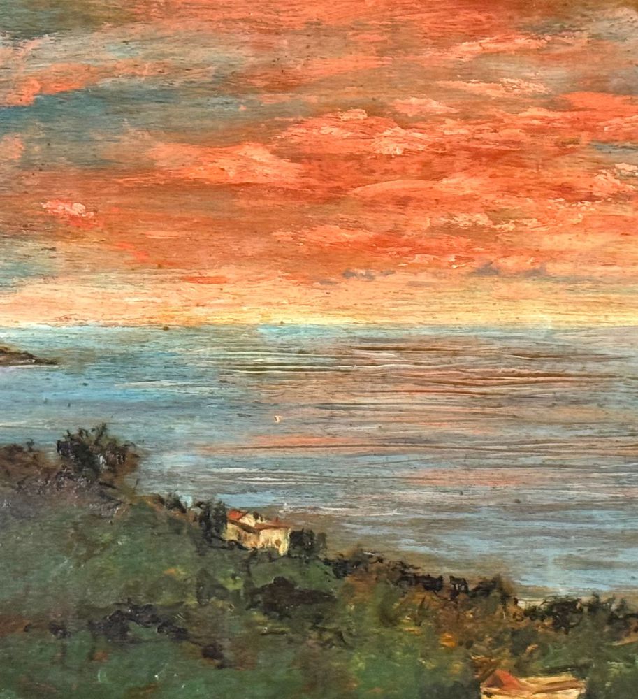 Dipinto olio su tavola, periodo XX secolo, scuola Europea, raffigurante Paesaggio marino. Dimensioni: 37,5x23,5 cm. Traccia di firma in basso a sinistra da artista non identificato. Opera in buone condizioni con lievi segni di vissuto come da foto allegate.