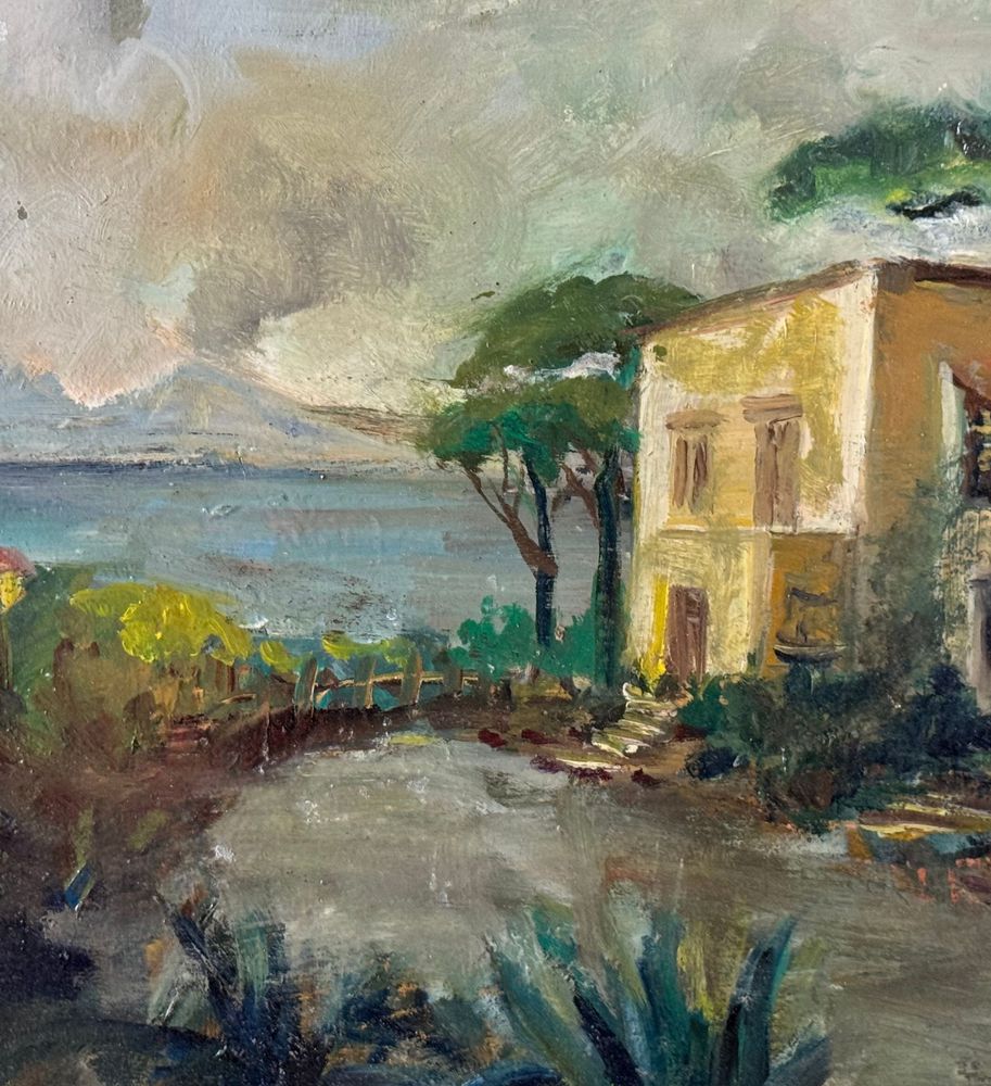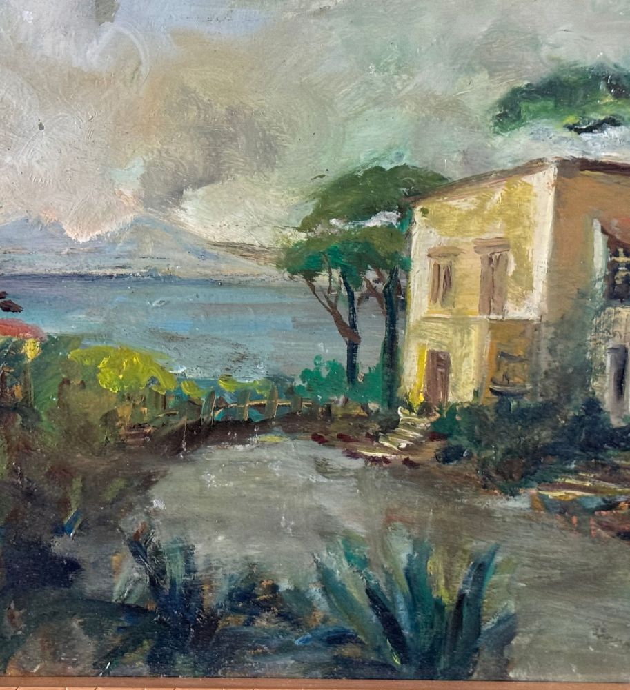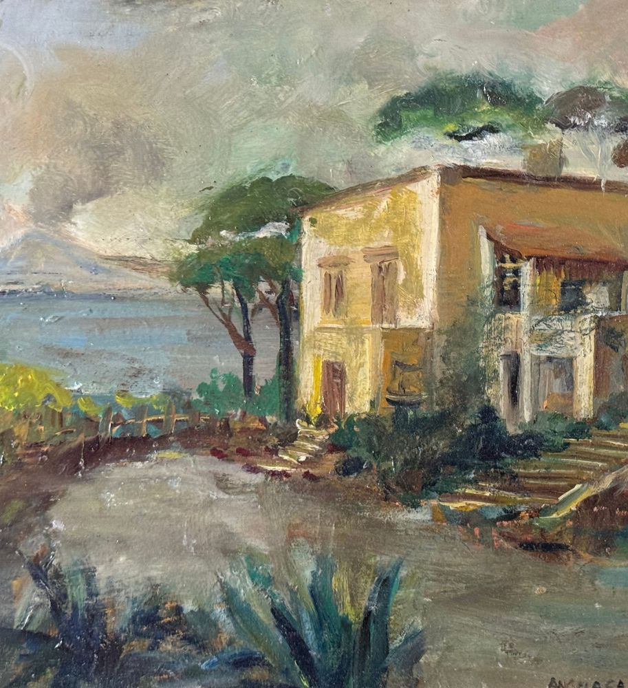 Dipinto olio su pannello, periodo XX secolo, scuola Italiana, raffigurante Paesaggio partenopeo. Dimensioni compreso cornice: 48x38 cm. Dimensioni interno cornice: 30x40 cm. Firmato in basso a destra Angela Carugati. Opera in buone condizioni.