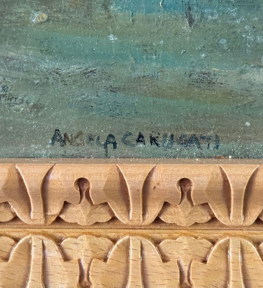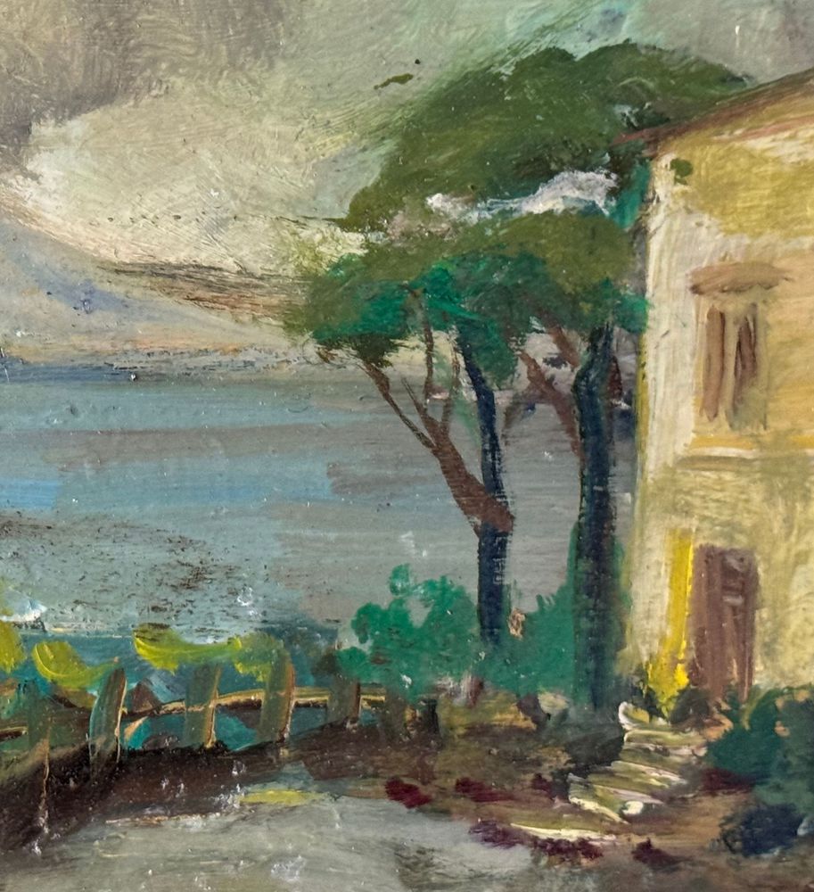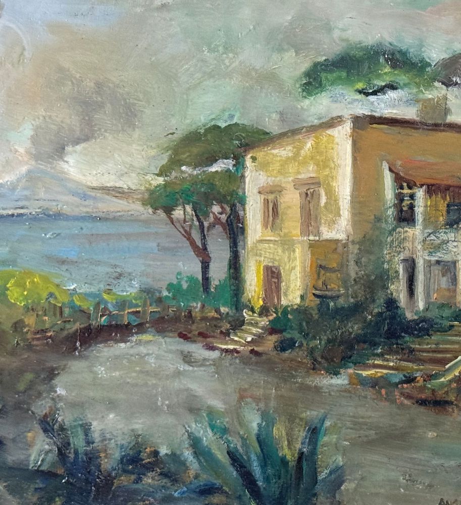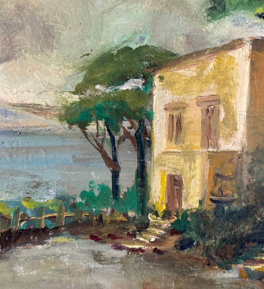 Dipinto olio su pannello, periodo XX secolo, scuola Italiana, raffigurante Paesaggio partenopeo. Dimensioni compreso cornice: 48x38 cm. Dimensioni interno cornice: 30x40 cm. Firmato in basso a destra Angela Carugati. Opera in buone condizioni.