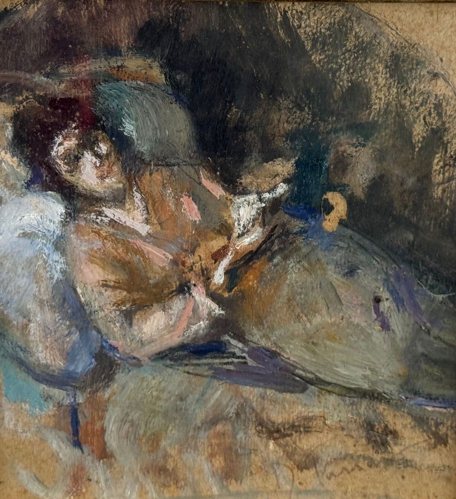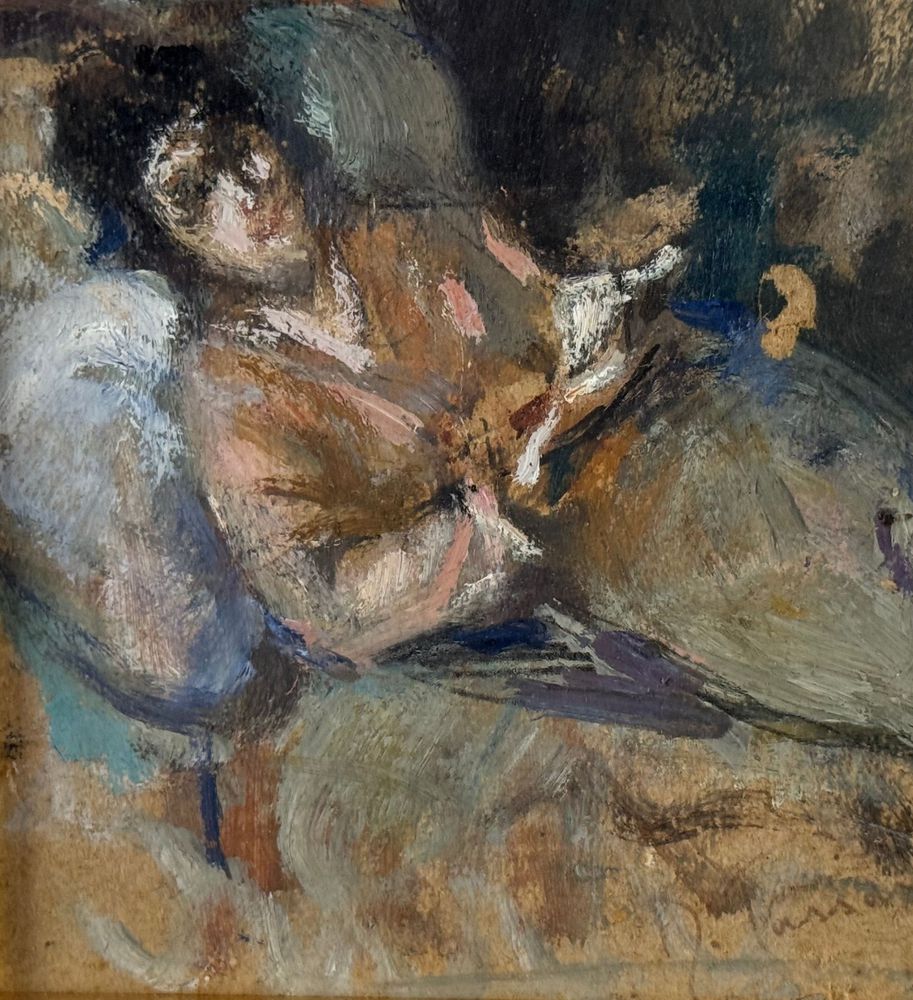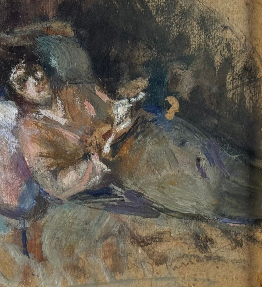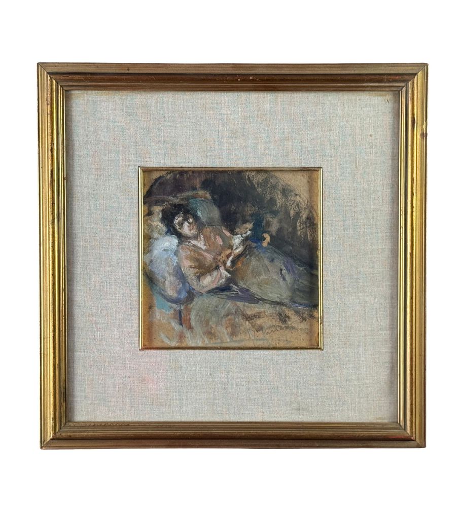 Tecnica mista su cartoncino, periodo XX secolo, scuola Italiana, raffigurante Donna distesa. Dimensioni compreso cornice: 35x35 cm. Dimensioni interno cornice: 16x16 cm. Firmato in basso a destra artista non identificato. Opera in buone condizioni.