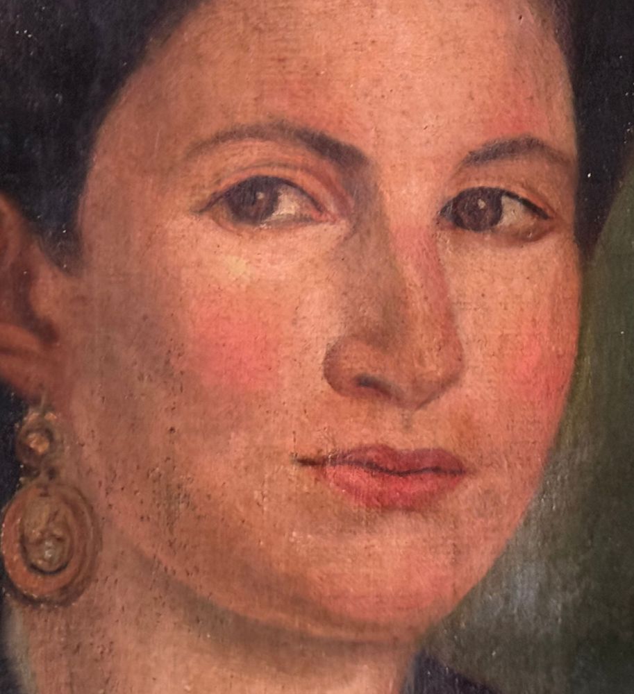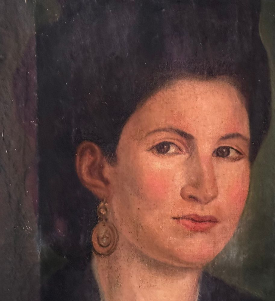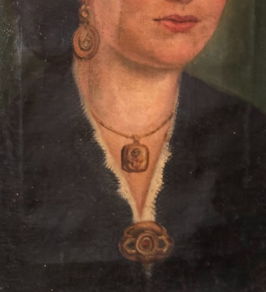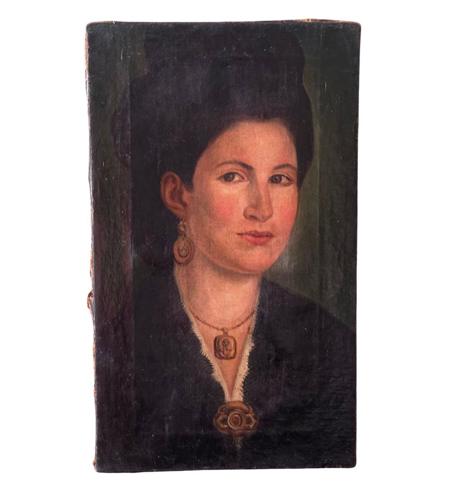 Dipinto olio su tela, periodo XIX/XX secolo, scuola Italiana, raffigurante Ritratto di donna. Dimensioni: 30x51 cm. Artista anonimo. Opera in discrte condizioni con lievi segni di visstuo come da foto allegate.