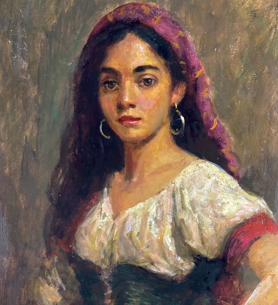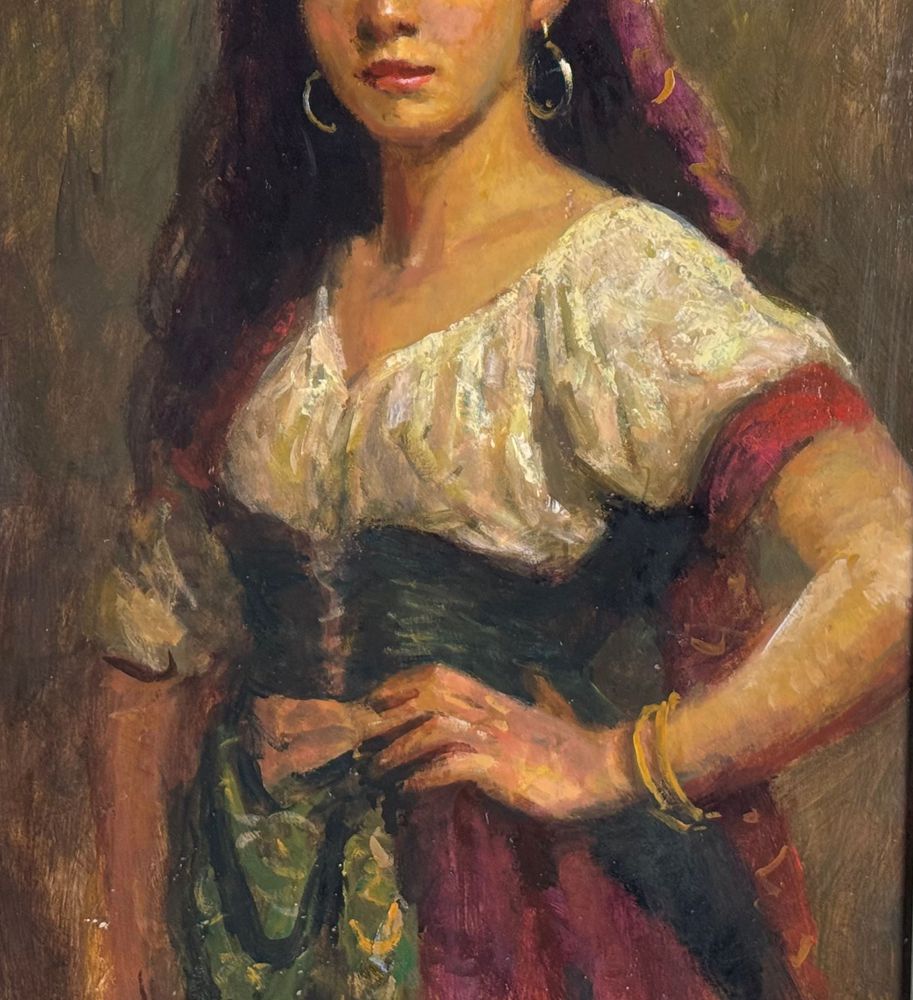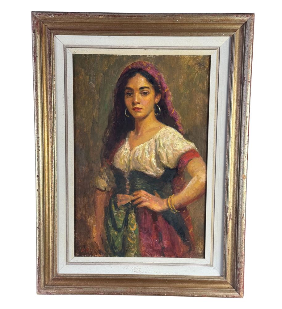 Dipinto olio su tela, periodo XX secolo, scuola Italiana, raffigurante Ritratto di donna. Dimensioni compreso cornice: 62x81 cm. Dimensioni interno cornice: 40x60 cm. Iniziali in basso a sinistra artista non identificato. Opera in buone condizioni.