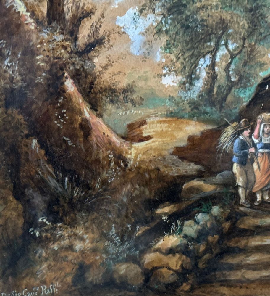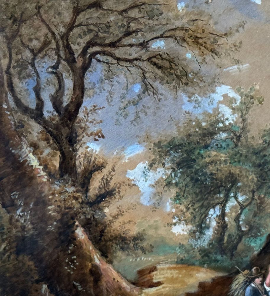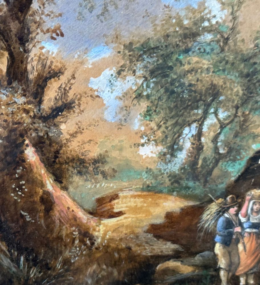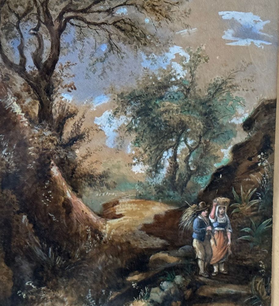 Dipinto olio su cartoncino, periodo XIX/XX secolo, scuola Italiana, raffigurante Paesaggio con personaggi. Dimensioni compreso cornice: 41x49 cm. Dimensioni interno cornice: 22x30 cm. Firmato in basso a sinistra artista non identificato. Opera in buone condizioni.