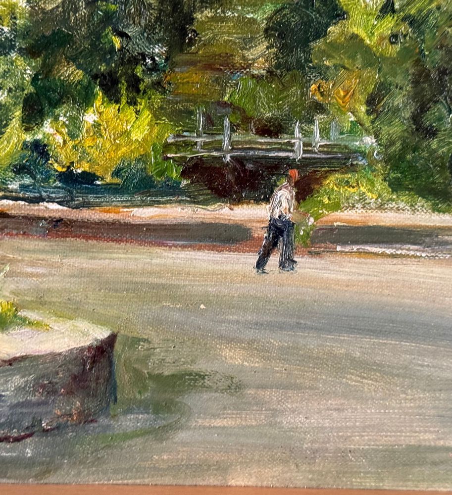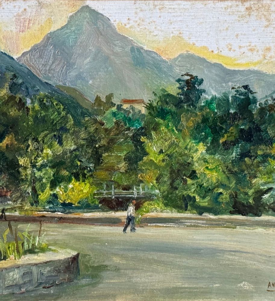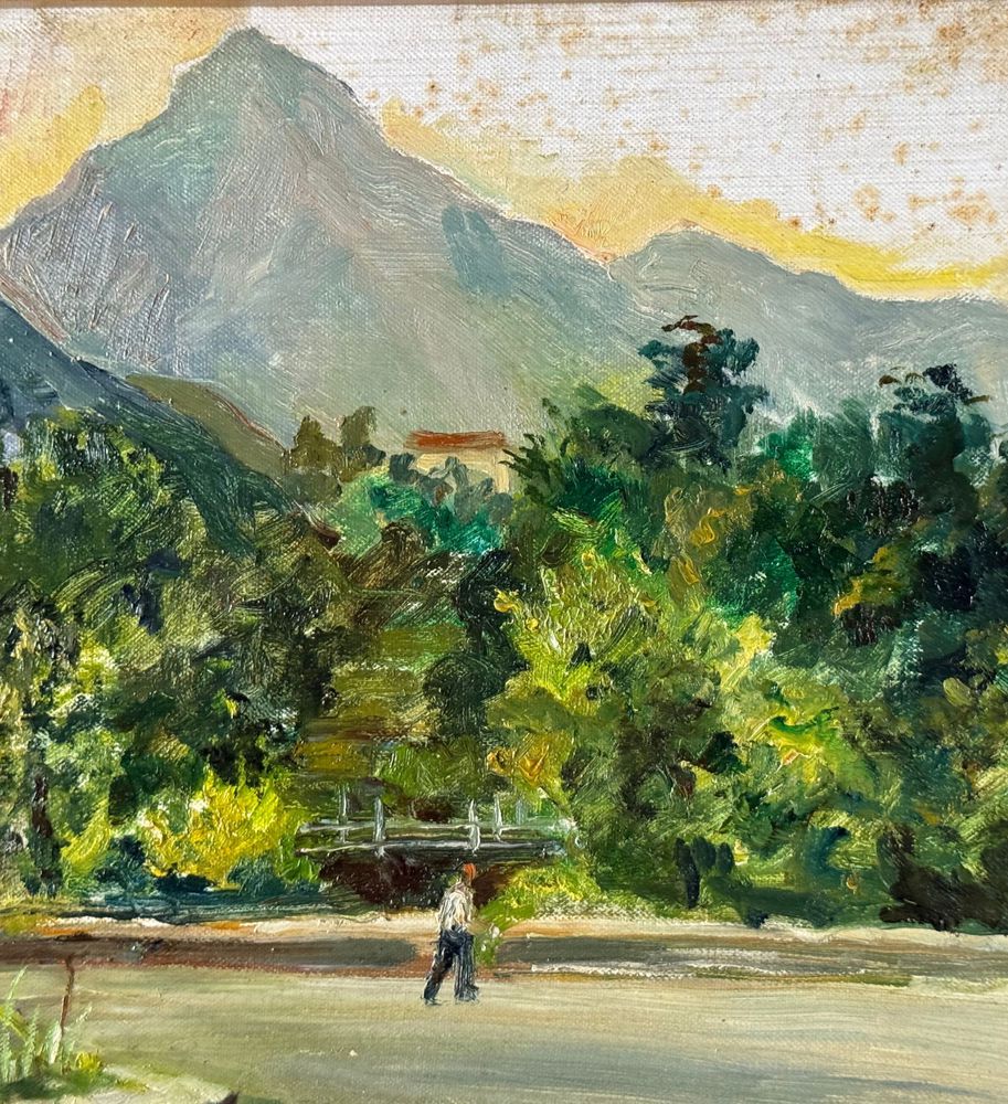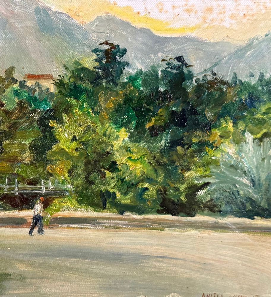 Dipinto olio su tela applicata su pannello, periodo XX secolo, scuola Italiana, raffigurante Paesaggio. Dimensioni compreso cornice: 48x38 cm. Dimensioni interno cornice: 30x40 cm. Firmato in basso a destra Angela Carugati. Opera in buone condizioni.