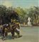 Dipinto olio su tavola, periodo XX secolo, scuola Italiana, raffigurante Carrozza con cavalli al parco. Dimensioni compreso cornice: 34x29 cm. Dimensioni interno cornice: 20x15 cm. Firmato in basso a destra Di Bossa. Opera in buone condizioni.
