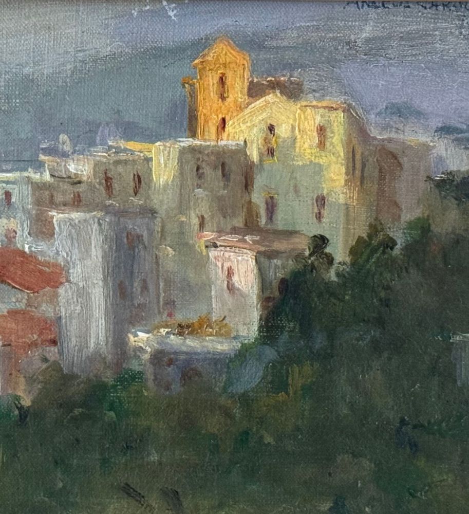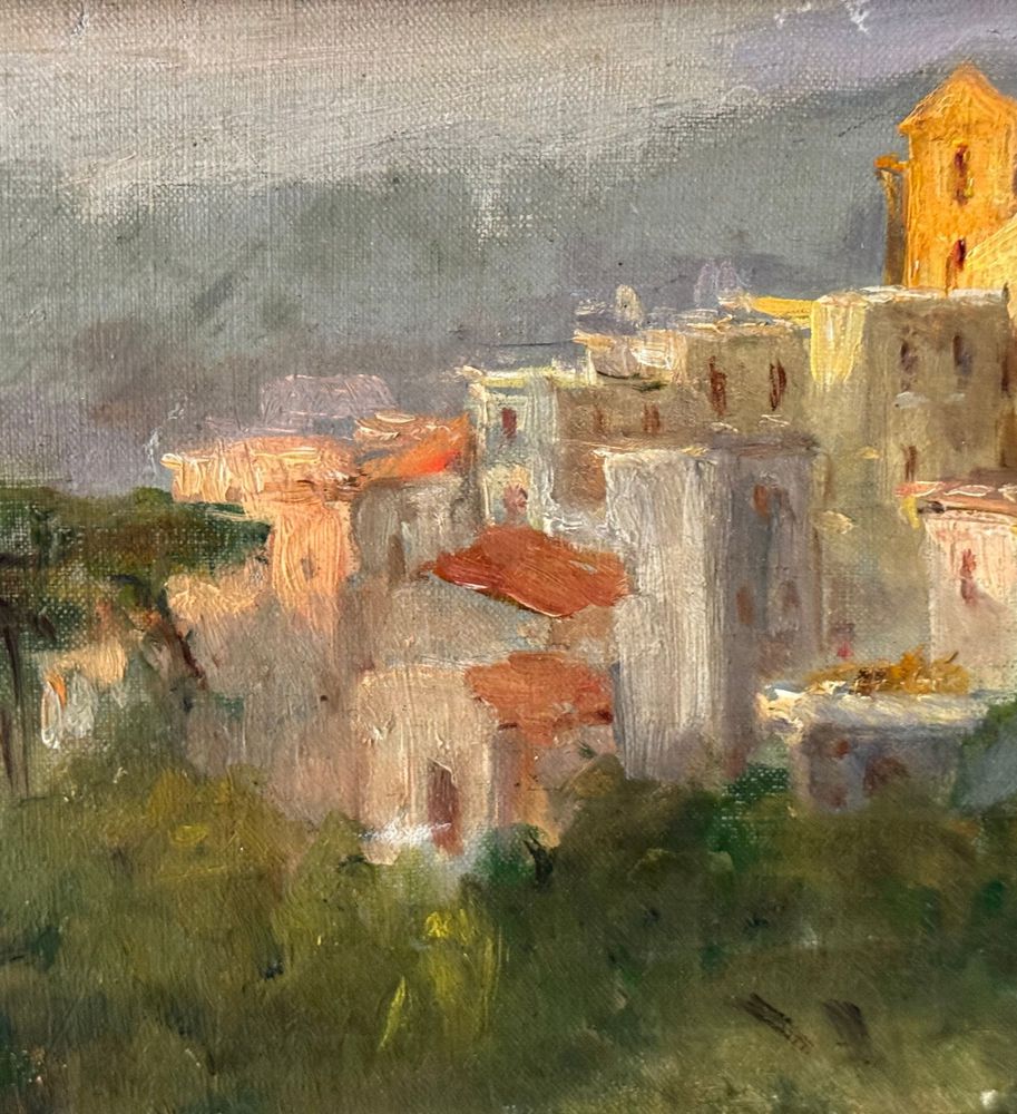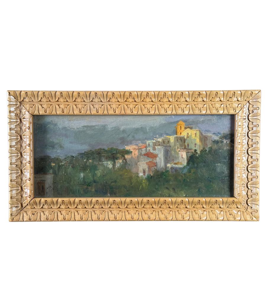 Dipinto olio su tela, periodo XX secolo, scuola Italiana, raffigurante Paesaggio. Dimensioni compreso cornice: 48x25 cm. Dimensioni interno cornice: 39x17 cm. Firmato in alto a destra Angela Carugati. Opera in buone condizioni.