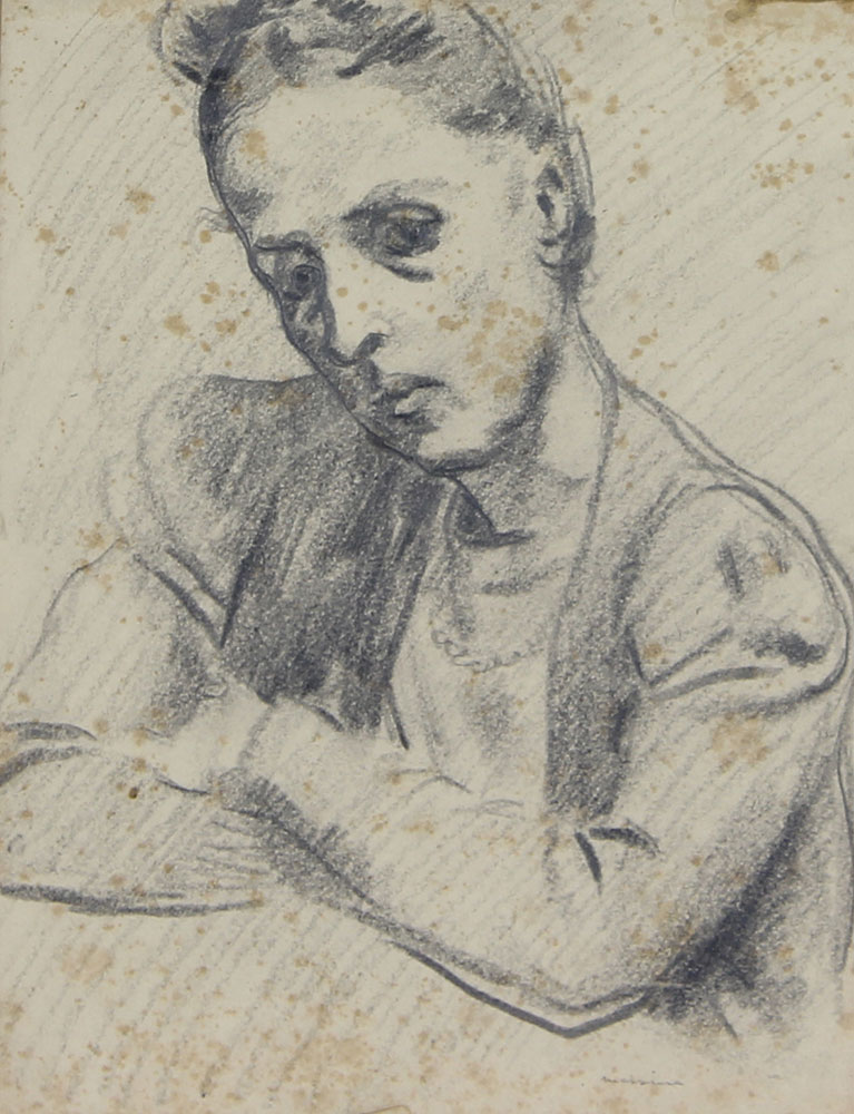 Messina Francesco Ritratto disegno su carta, cm. 29,5x22,5 firmato in basso a destra, i margini risultano danneggiati, sono presenti numerosi segni di umidità senza cornice